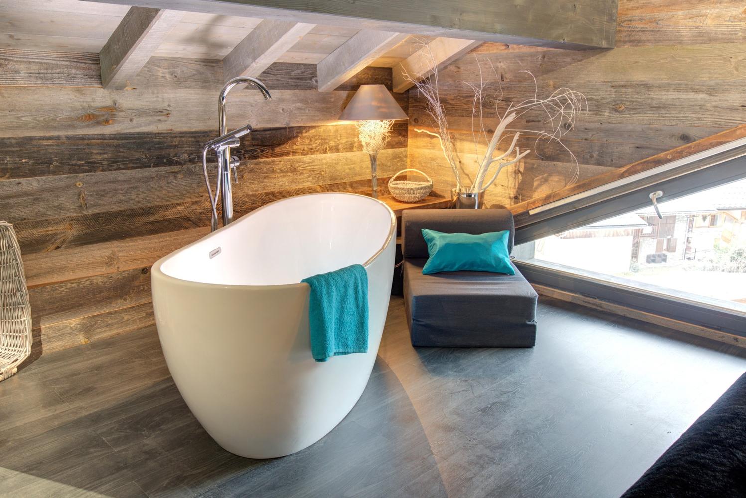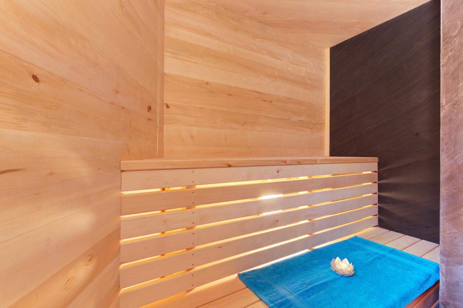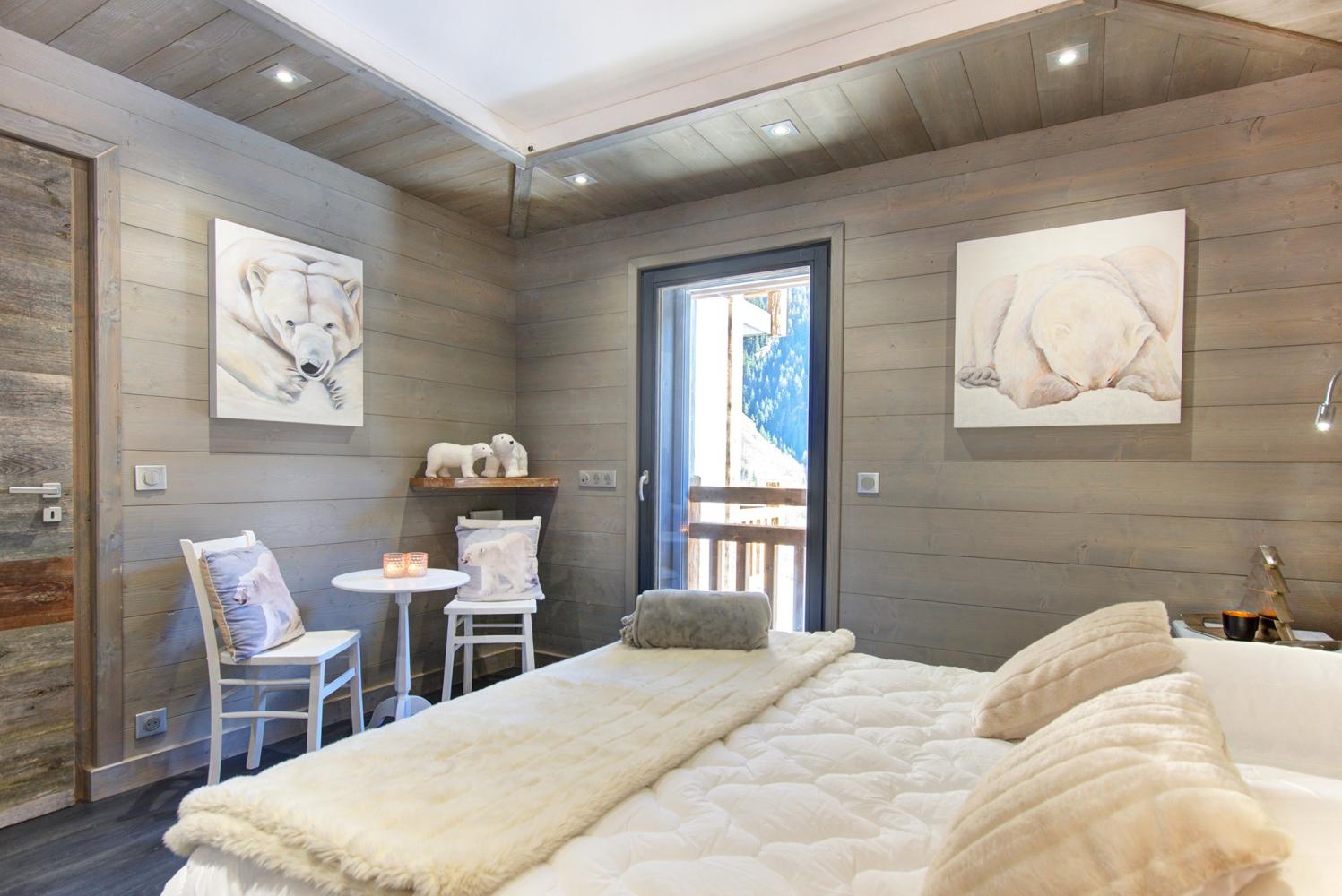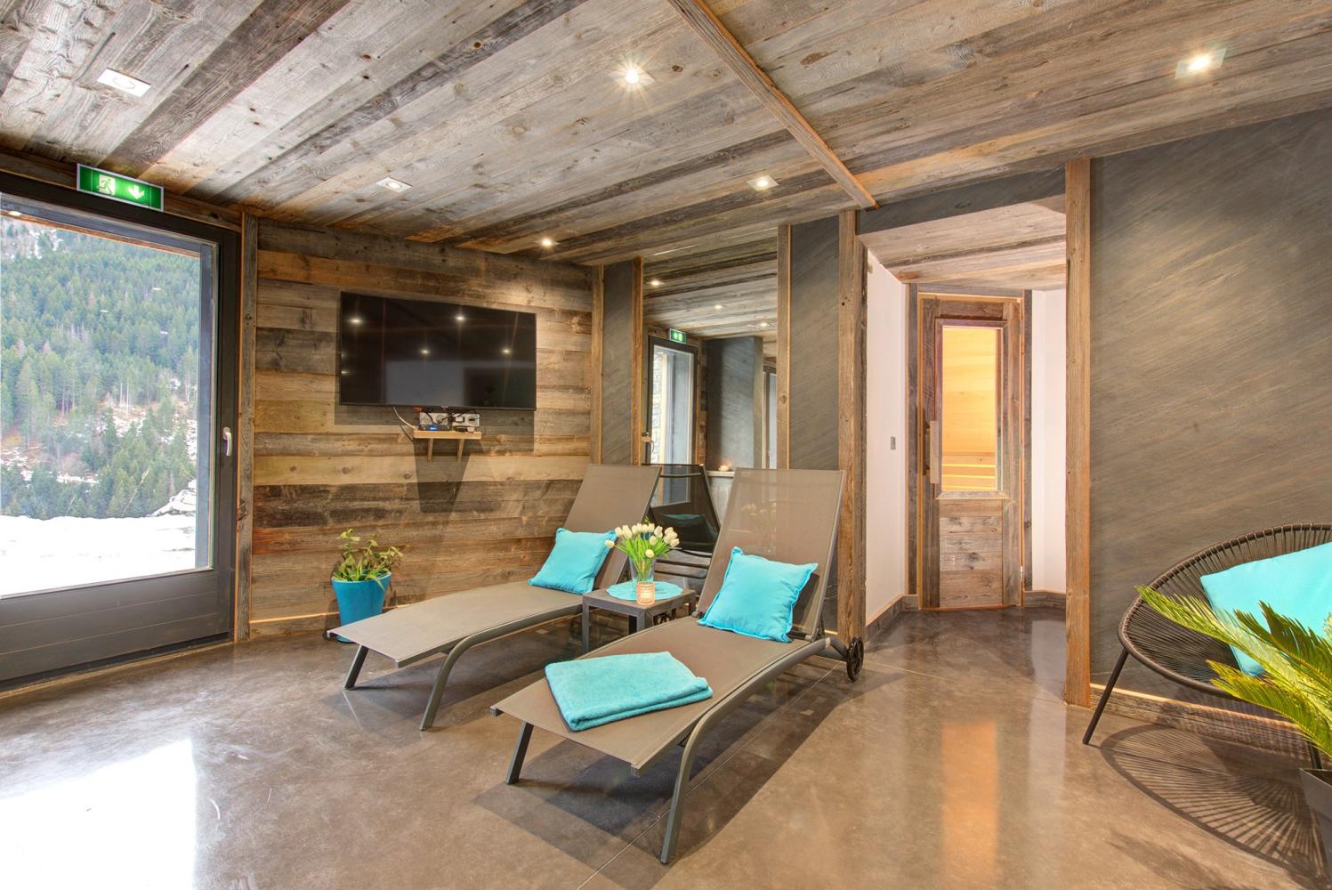Die Schlafzimmer verteilen sich über 3 Etagen. 6 Schlafzimmer verfügen über ein eigenes en-suite Bad mit Dusche und Waschbecken sowie einen Flatscreen-TV. Ein Schlafzimmer hat eine Badewanne. Alle Betten sind 2 m lang. Es gibt drei separate WC im Chalet. Entspannen Sie sich nach einem Skitag voller Eindrücke im Wellnessbereich mit Privat-Sauna für 4-6 Personen sowie großem Whirlpool, Dusche und Kübeldusche. Zudem gibt es dort eine Bluetooth-Soundbar sowie einen Flatscreen-TV.