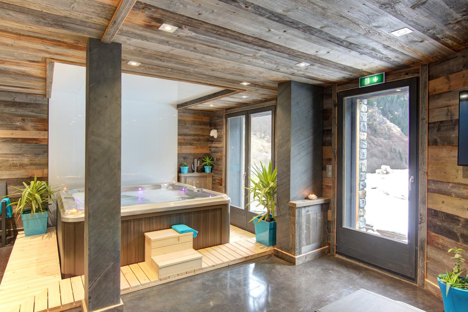 Entfernung zum Skigebiet Paradiski ~650 m. Neues, großzügiges Luxus-Chalet mit Sauna, Whirlpool und Gratis-WLAN in Champagny en Vanoise, Teil des Skigebietes La Plagne-Paradiski. Die regionaltypische Bauweise mit Holz und Stein, verbunden mit dem modernen Interieur und hochwertiger Ausstattung, macht den besonderen Charme des Chalets aus.