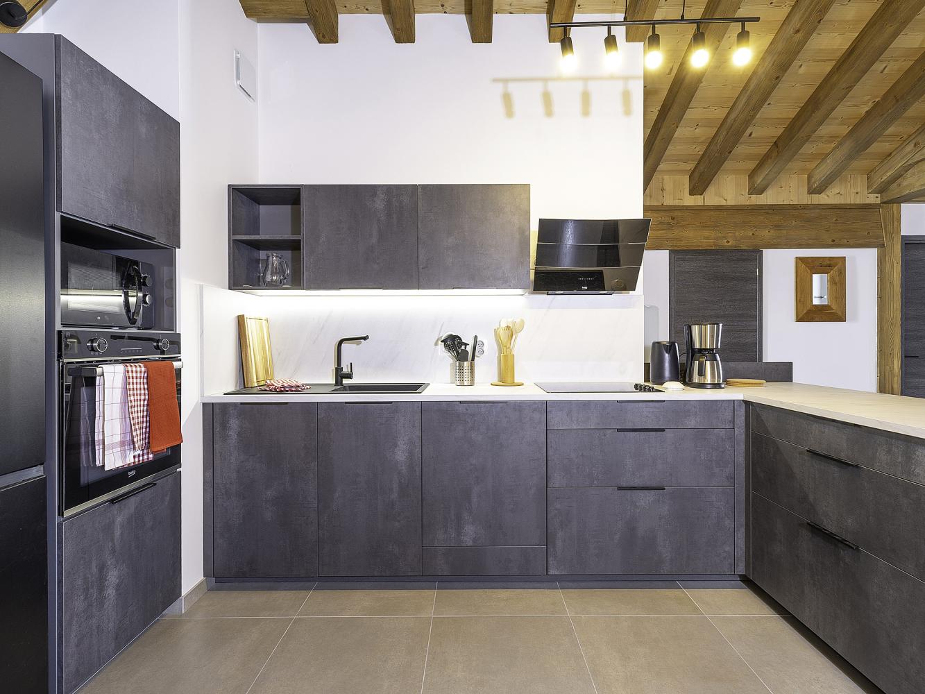 Küche zum Wohnraum offen (Spülmaschine + Kühlschrank mit Gefrierfach + Herd mit Cerankochfeld + Backofen + Mikrowelle + Kaffeemaschine + Toaster + Wasserkocher + Raclettegerät + Fondue-Set + Mixer); Smart TV; Gratis-WLAN; Haartrockner; Handtuchtrockner; Waschmaschine; Balkon; Skischrank; elektrischer Skischuhtrockner
