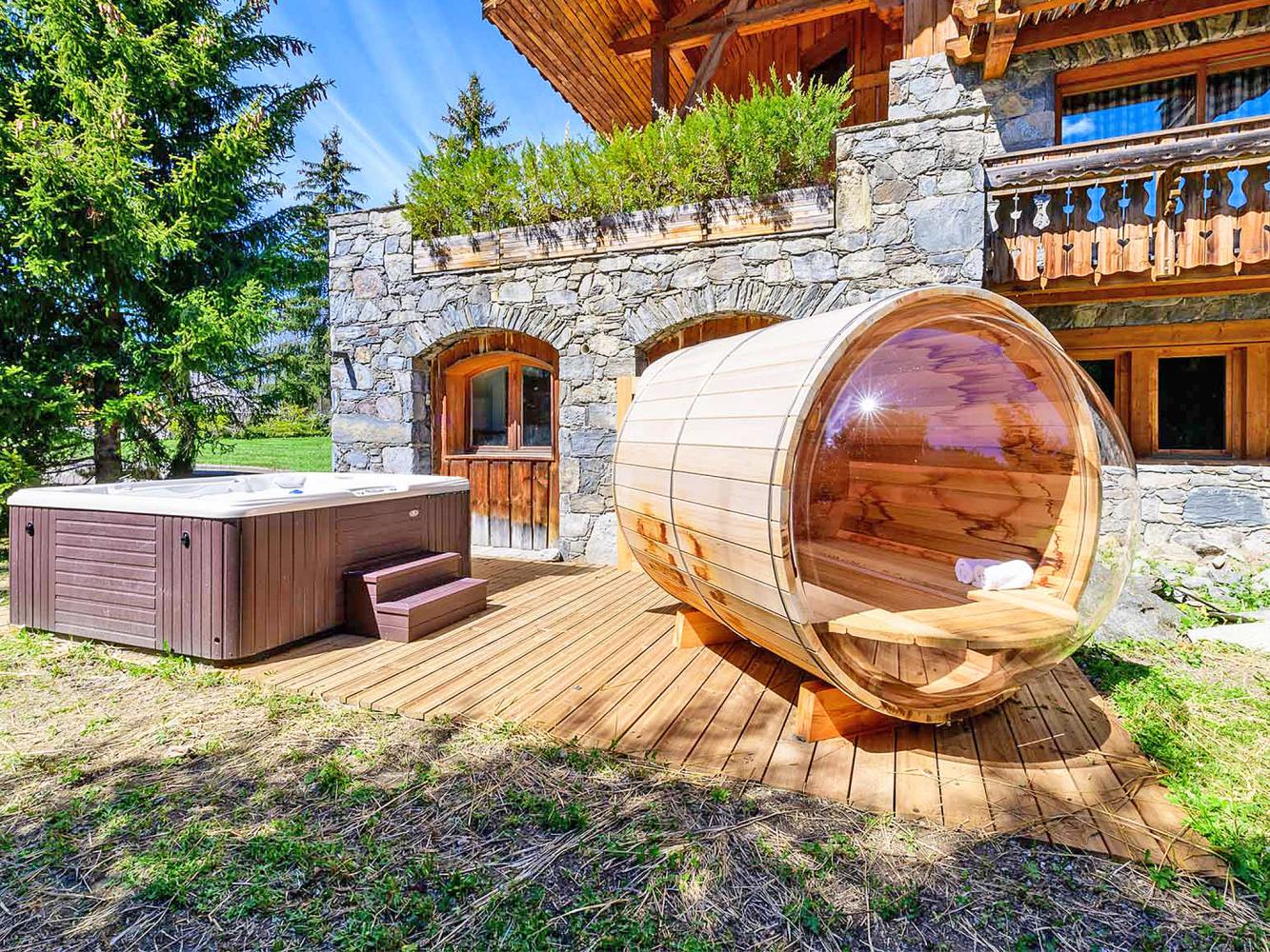 Entfernung zum Skigebiet 3 Vallées ~450 m. Großzügiges Komfort-Chalet im TOP-Skigebiet 3 Vallées, mit Außen-Whirlpool, Außen-Sauna, Kamin und Gratis-WLAN. Das im traditionellen Stil erbaute Chalet ist mit viel Liebe zum Detail eingerichtet, was sofort für eine angenehme Wohn-Wohlfühlatmosphäre sorgt. Sehr gute Aufteilung mit 7 Schlafzimmern sowie 7 Badezimmern. Genießen Sie gemütliche Chaletabende im Wohnraum mit Sofas und TV vor dem warmen, hell lodernden Kaminfeuer. Die Sauna und der Whirlpool auf der Terrasse laden nach einem ereignisreichen Skitag zum Entspannen ein. Bademäntel sind inklusive.