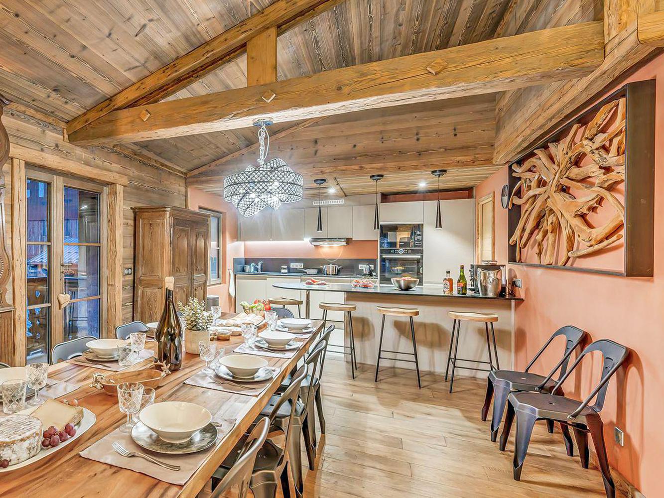 Die geschmackvolle Einrichtung, mit eleganten Holzmöbeln, modischem Lichtkonzept und liebevollen Details, verleihen dem Chalet seinen ganz besonderen Charme und eine hohe Wohnqualität. Im historischen Ortskern neben der Barockkirche gelegen, integriert es sich perfekt ins Dorfensemble von Les Brèvieres mit seinen engen Gassen und dem intakten Bergdorfleben, mit Restaurants, Kneipen und Geschäften.