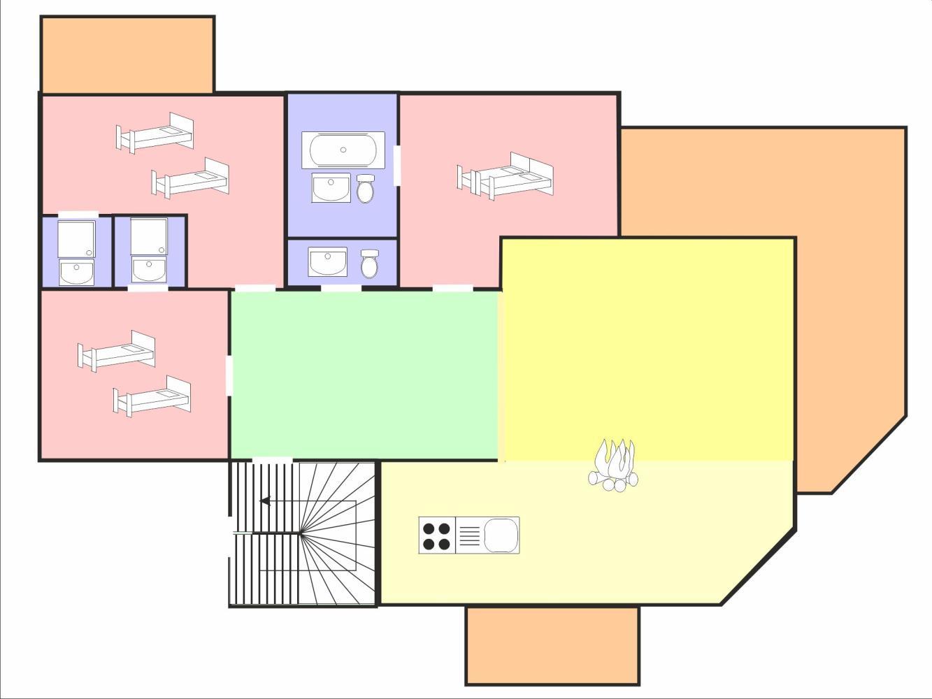 Küche zum Wohnraum offen (Spülmaschine + 3 Kühlschränke mit Gefrierfach + Gefrierschrank + E-Herd + Backofen + Grill + Mikrowelle + Kaffeemaschine + Raclettegerät + Fondue-Set); 2 Kamine; 5 Sat-TV (Flachbildschirm); 5 DVD-Player; Gratis-WLAN; Waschmaschine; Terrasse; 4 Balkone; Aussen-Grill