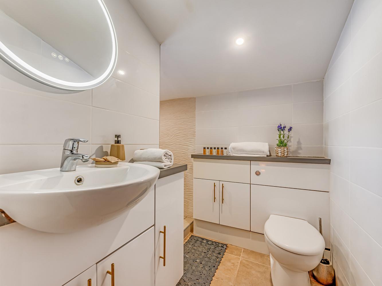 Level 2: hier befindet ein Schlafzimmer mit Doppelbett und eines mit 2 Einzelbetten. Badezimmer mit Dusche und WC.