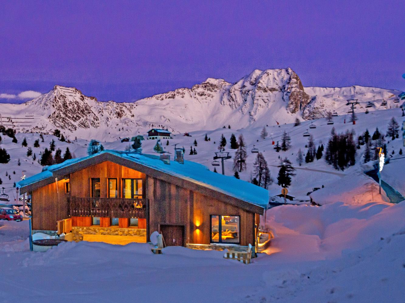 Höhenlage Chalet: 2.100 m. Skigebiet bis 3.250 m mit den Gletschern Bellecôte sowie Aiguille Rouge. Mit 425 Pisten-km eines der weltgrößten Skigebiete; 140 Lifte. Vielfältige Freeride-Möglichkeiten und Skirouten im hochalpinen Bereich des Bellecôte-Gletschers sowie am Skigipfel Biolley im Bereich von Plagne 1800.