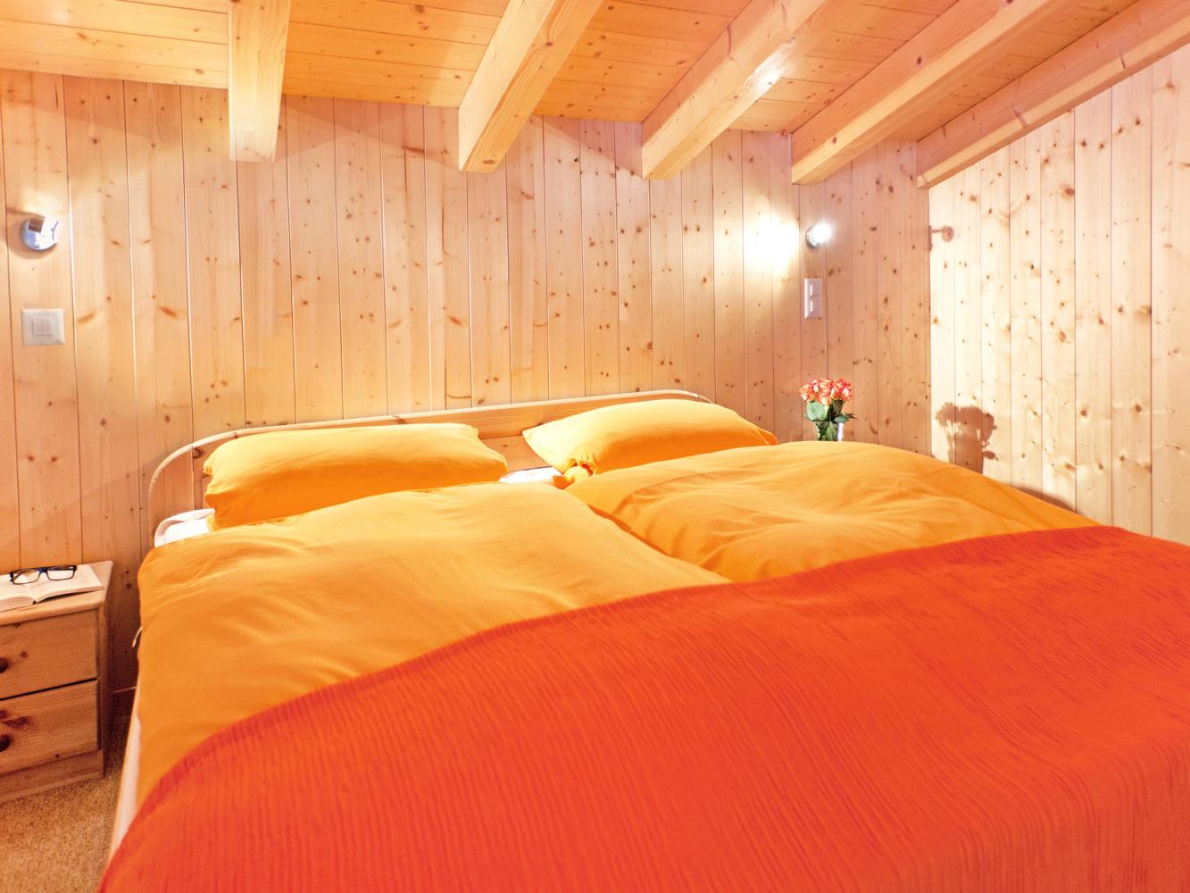 Großzügigkeit, durchdachte Aufteilung und hochwertige Einrichtung machen die besondere Wohnqualität von Chalet Michelle aus. Herrliche Panorama-Hanglage, etwas oberhalb des Skiorts La Tzoumaz. Herzstück des Chalets ist der großzügige Wohnraum mit gemütlicher Kaminecke und Flachbild-TV im 1. Obergeschoss. Zugang zum umlaufenden Balkon mit fantastischem Blick auf die Bergwelt. Der helle Essbereich lädt zu geselligen Chaletabenden ein. Zum Wohnraum offene, sehr gut und komplett ausgestattete Küche. Auf dieser Etage befinden sich zudem ein Doppelzimmer sowie ein Zimmer mit Etagenbett. Separates WC auf dem Gang. Das 2. Obergeschoss verfügt über ein Schlafzimmer mit Doppelbett, eines mit 2 Einzelbetten sowie ein Schlafzimmer mit Doppelbett und einem Einzelbett auf der Mezzanine. Im Basisgeschoss gibt es 3 weitere Doppelzimmer. Nach einem ereignisreichen Skitag können Sie in der Sauna perfekt entspannen. Im Saunabereich befindet sich zudem eine Dusche. Im Skiraum können Sie Ihre Skier und Schuhe verstauen. Privatparkplätze befinden sich direkt vor dem Chalet.