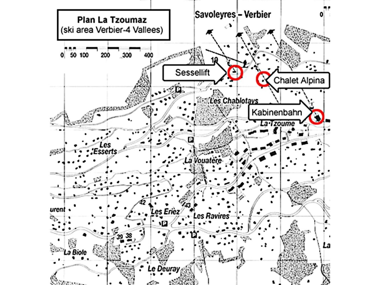 Auf Ski startet man am Chalet und gelangt zu diesem zurück; dieser freie Skihang direkt am Chalet wird nicht präpariert (auf eigene Gefahr). Zur Sesselbahn Etablons und den offiziellen Skipisten ~250 m. Schöne Hanglage oberhalb des Skiorts La Tzoumaz. Ins Zentrum mit Geschäften, Restaurants, Skischule, Kinderbetreuung, Eislaufplatz, Hallenbad ~800 m auf Ski bzw. ~1,5 km per Pkw. Kinderskilift ~200 m. Gratis Ski- und Ortsbus ~300 m.