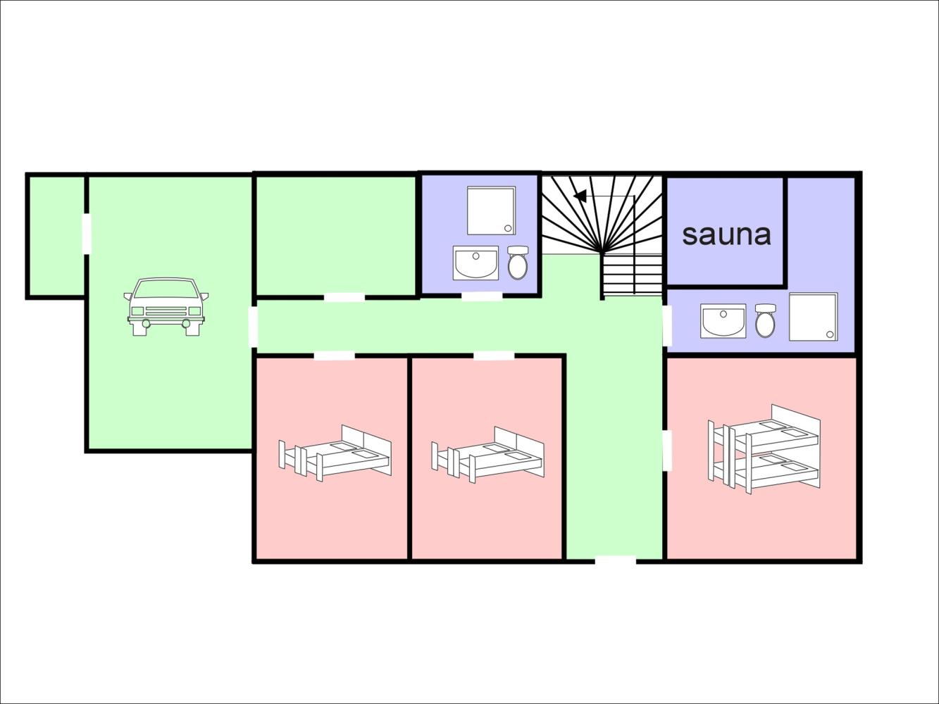 Basisgeschoss: hier befinden sich die anderen Schlafzimmer und Badezimmer. Die Wärmeversorgung des Chalets erfolgt teilweise über ein modernes, umweltfreundliches Geothermik-Heizsystem.