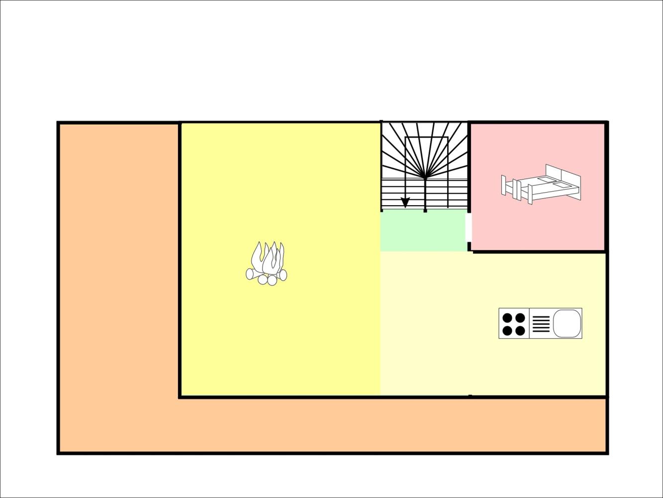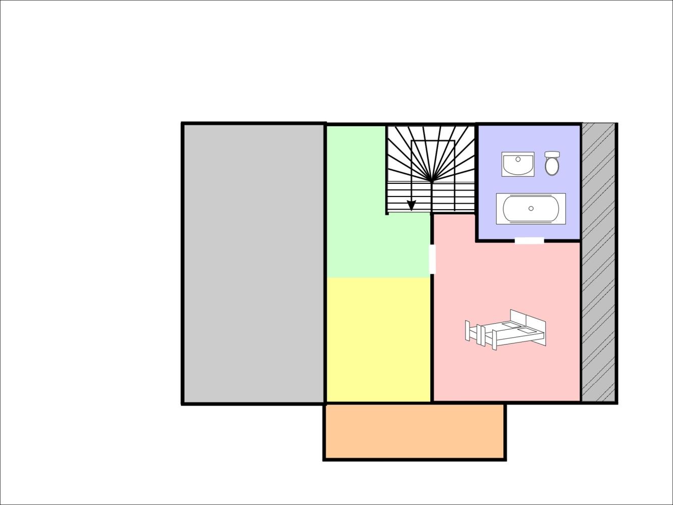 Im Obergeschoss ist das große Doppelzimmer, erreichbar über eine offene Galerie. Es verfügt über ein eigenes Bad mit Whirlpoolwanne. Auf der Galerie befindet sich ein gemütliches Sofa sowie Unterhaltungselektronik.