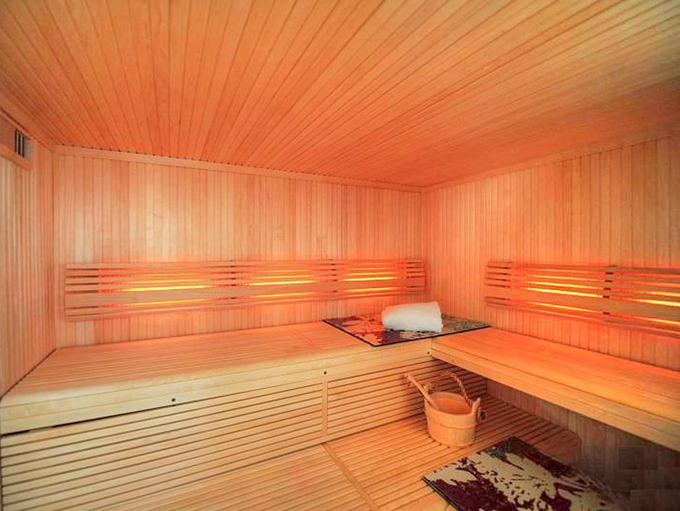 Im Erdgeschoss befindet sich der weitläufige Wellnessbereich: Entspannen in stilvollem Ambiente mit großer Sauna, Regendusche, WC, Relax-Ruhezone sowie Außen-Whirlpool (ohne Gebühr). Ebenfalls auf dieser Etage befindet sich ein weiterer Tagesraum mit Schreibtisch. Als besonderes Extra steht der Chalet-Weinkeller mit einer Auswahl ausgesuchter Weine, Champagner und hochwertigen Spirituosen zur Verfügung (gegen Gebühr). Der Skiraum ist aus der Doppelgarage direkt zugänglich.