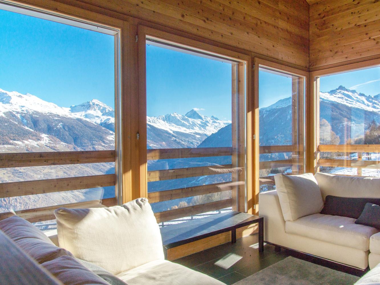 Das elegante, sehr geräumige Architekten-Chalet mit Doppelgiebel kombiniert moderne Elemente mit traditionellen Materialien – Holz und Naturstein nehmen die Charakteristik der alpinen Umgebung auf. Ausgewählte, hochwertige Einrichtung und Bauweise, unter Beachtung zeitgemäßer Umweltstandards. Die Wärmeversorgung erfolgt hauptsächlich über ein Geothermie-Heizsystem. Spektakuläre Aussicht auf das 4.487 m hohe Matterhorn sowie die Berner und Walliser Alpen, erlebbar gemacht durch die großen Panoramafenster. Zugang zu den beiden Terrassen (Süd- und Nordseite) vom Wohn- und Essbereich aus.