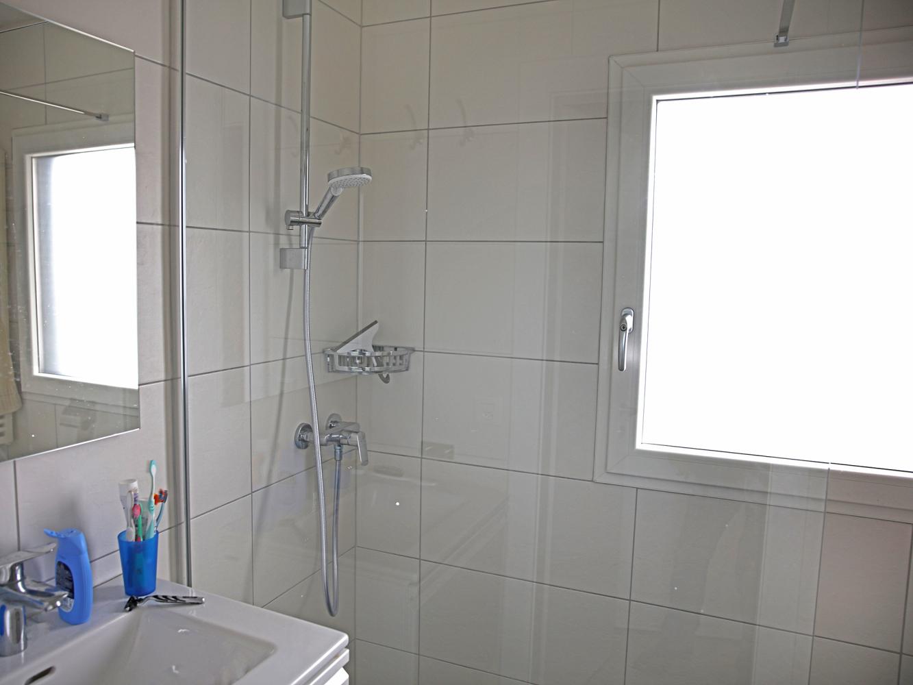 Das Erdgeschoss verfügt über einen eigenen Eingang (Verbindung zu den übrigen Räumen über Außenbereich). Hier befinden sich zwei Schlafzimmer und ein Badezimmer (Dusche/WC). Außerdem gibt es eine voll ausgestattete Küche mit einem Wohnbereich und TV.