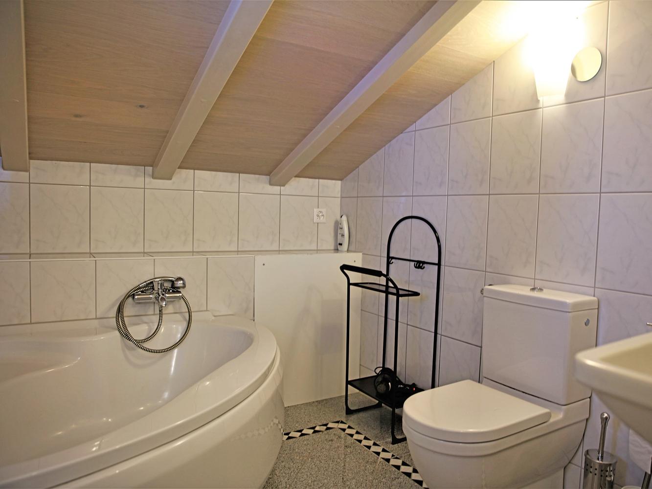Die zweite Etage verfügt über eine kleine Leseecke mit Schreibtisch und Sofa. Zudem gibt es hier ein weiteres Schlafzimmer und ein Badezimmer (Badewanne/WC).