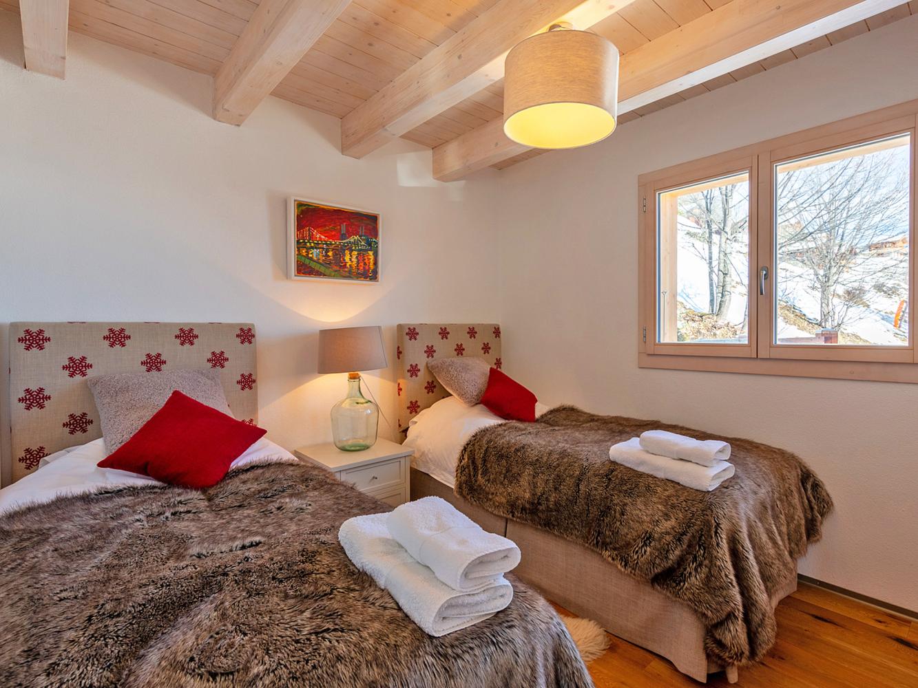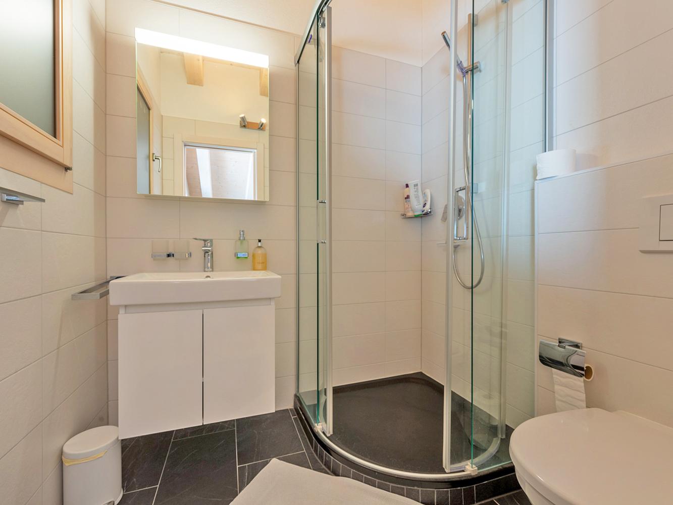 Im Erdgeschoss befindet sich ein weiteres Schlafzimmer mit 2 Etagenbetten für bis zu 4 Pers., mit en-suite Badezimmer. Stauraum für Skischuhe sowie einen Skischuhtrockner gibt es im Basisgeschoss.