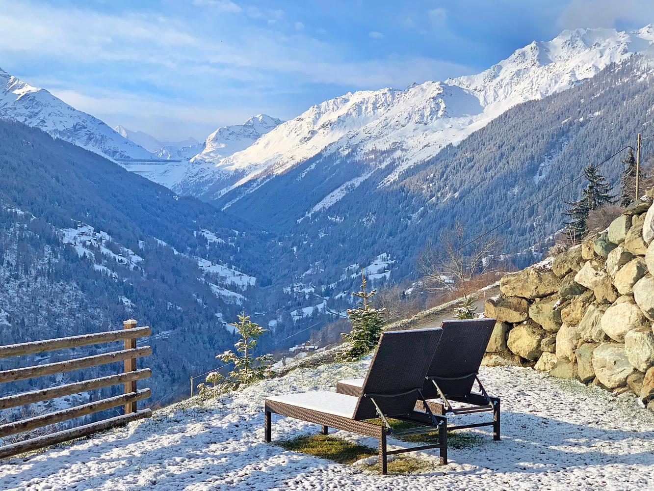 Das Chalet verfügt über einen Gartenbereich, zwei Balkone und eine Südterrasse. Es gibt einen Gartentisch und 8 Stühle, jeweils zwei Sonnenstühle- und zwei Sonnenliegen. Im Sommer steht ein Gasgrill zur Verfügung.