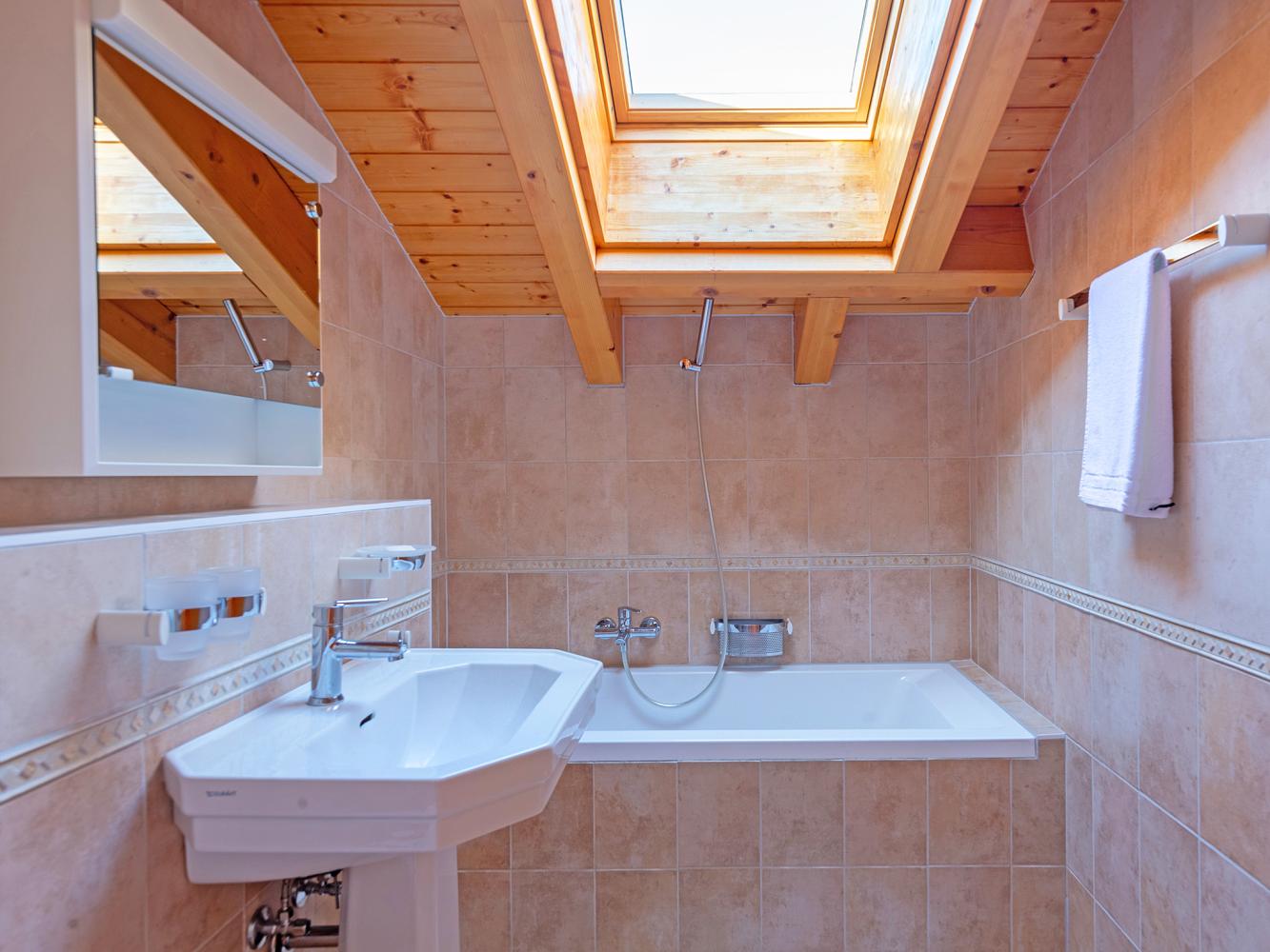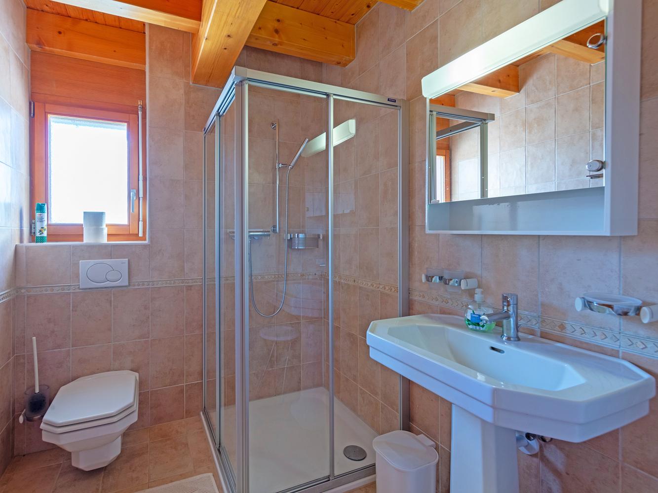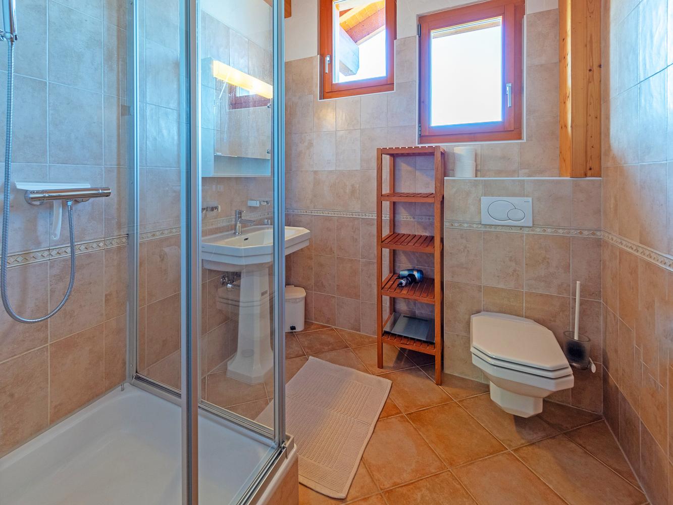 Im Erdgeschoss des behaglichen Chalets befindet sich die voll ausgestattete Küche mit Esstisch, an dem 9 Personen bequem Platz finden. Licht durchfluteter, freundlicher Wohnbereich mit Panoramafenstern sowie bequeme Sofas am offenen Kamin. Auf dieser Etage befinden sich auch zwei Schlafzimmer, eines mit zwei Einzelbetten (zum Doppelbett verbindbar) und eines mit einem Einzelbett (mit Schreibtisch). Ausserdem gibt es ein Badezimmer mit Dusche und WC.