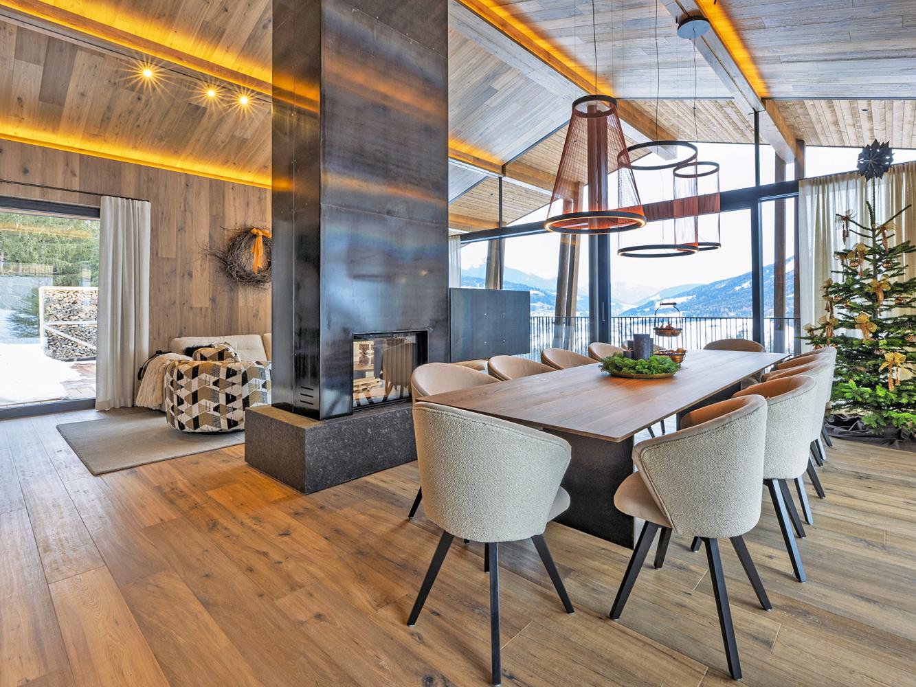 Das außergewöhnliche Chalet auf drei Etagen begeistert durch seine elegante und hochwertige Einrichtung.