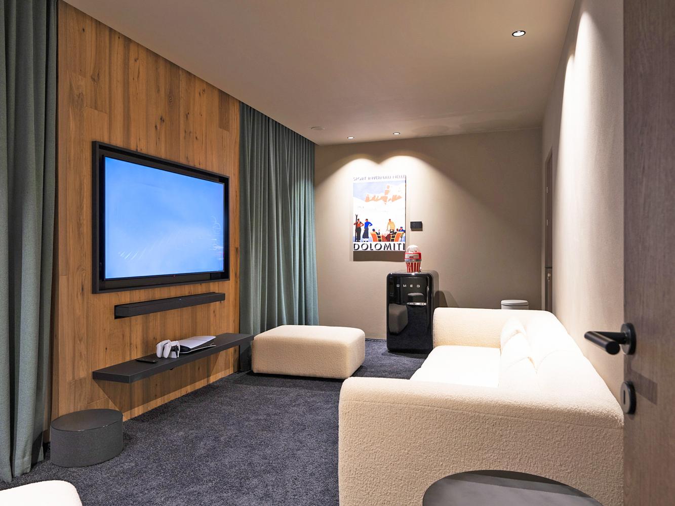 Ein besonderer Blickfang ist der begehbare Weinschrank mit Glasfront, hier finden Sie eine Auswahl an Südtiroler und italienische Weine (gegen Gebühr).