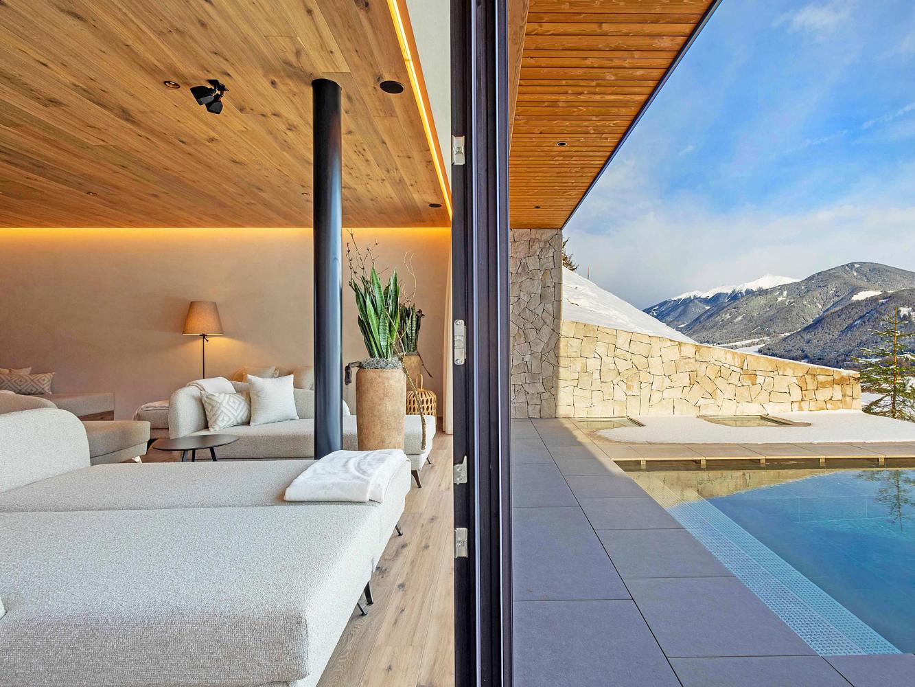 In traumhafter Panoramalage über Olang, umringt von Wiesen und Wäldern, ist dieses architektonische Juwel in natürlicher Bauweise der perfekte Ort für eine ungestörte Auszeit in der Natur sowie ein idealer Ausgangspunkt für Ski- und Wanderurlaube.
