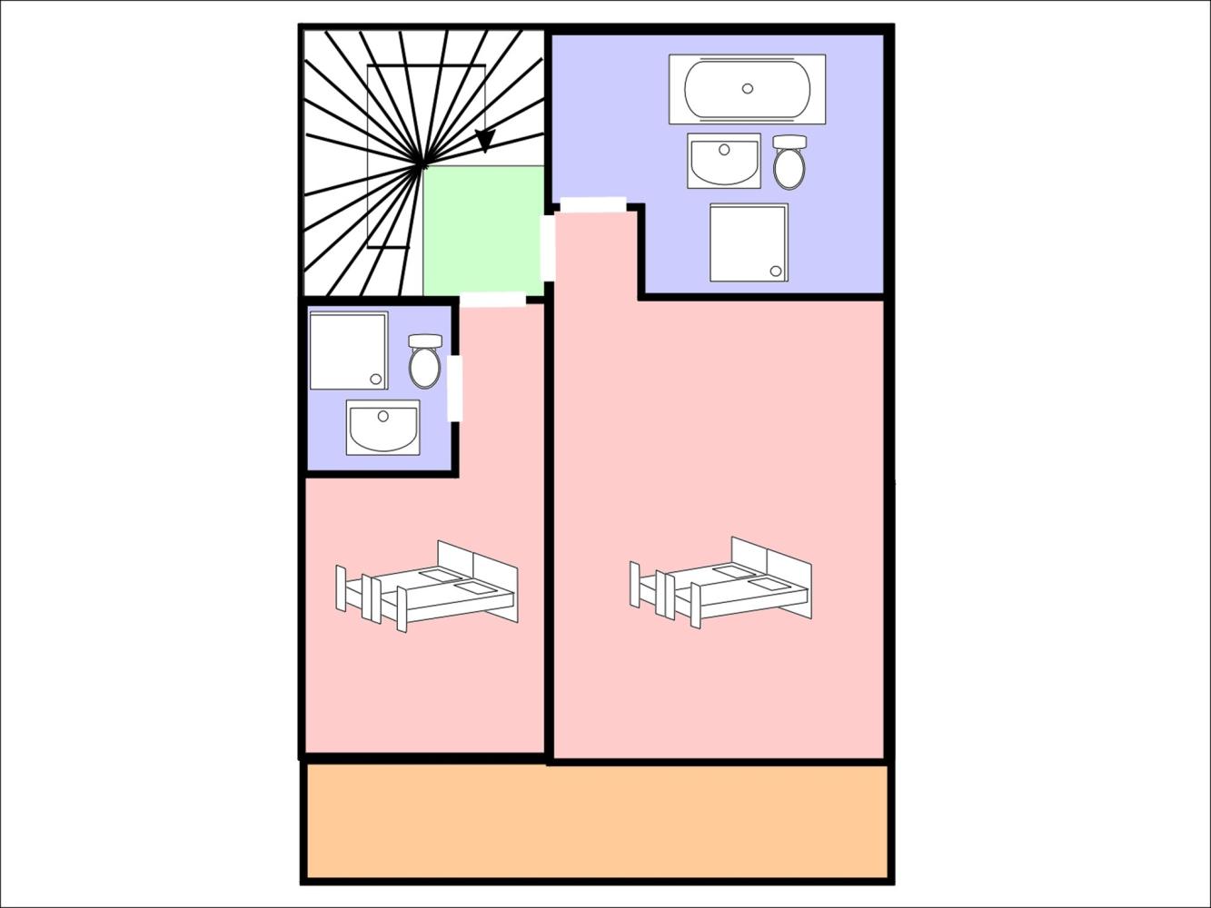 • 2 bathrooms (washbasin + bath + toilet in each)