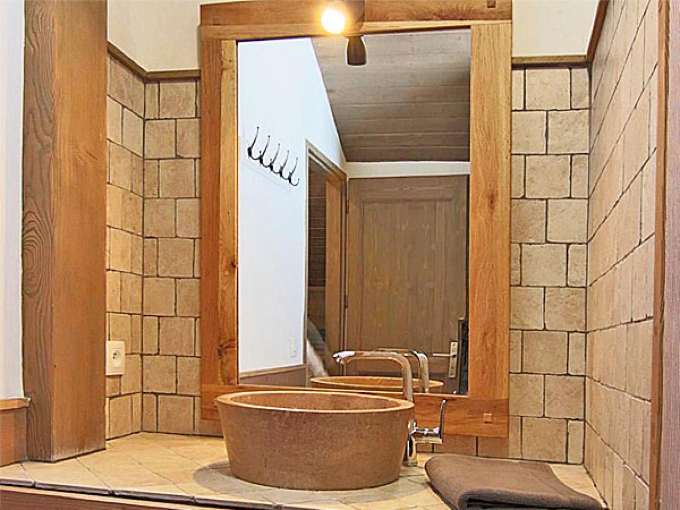 Distance to ski area Paradiski ~10 m. Spacious and comfortable chalet with open fire place. The chalet is part of the car free residential area "Les Chalets de Bellecôte", situated directly on the blue ski slope above the village centre of Vallandry. The chalet offers a stunning panoramic view over the valley. The cosy living room with dining area and the well-equipped kitchen are located on the ground floor. Separate WC. On the lower level you will find three bedrooms and two bathrooms as well as a separate WC. Two bedrooms are located on the upper level. Furthermore, there is a small bedroom (with limited headroom) with two single beds. A bathroom and a separate WC are on the floor.