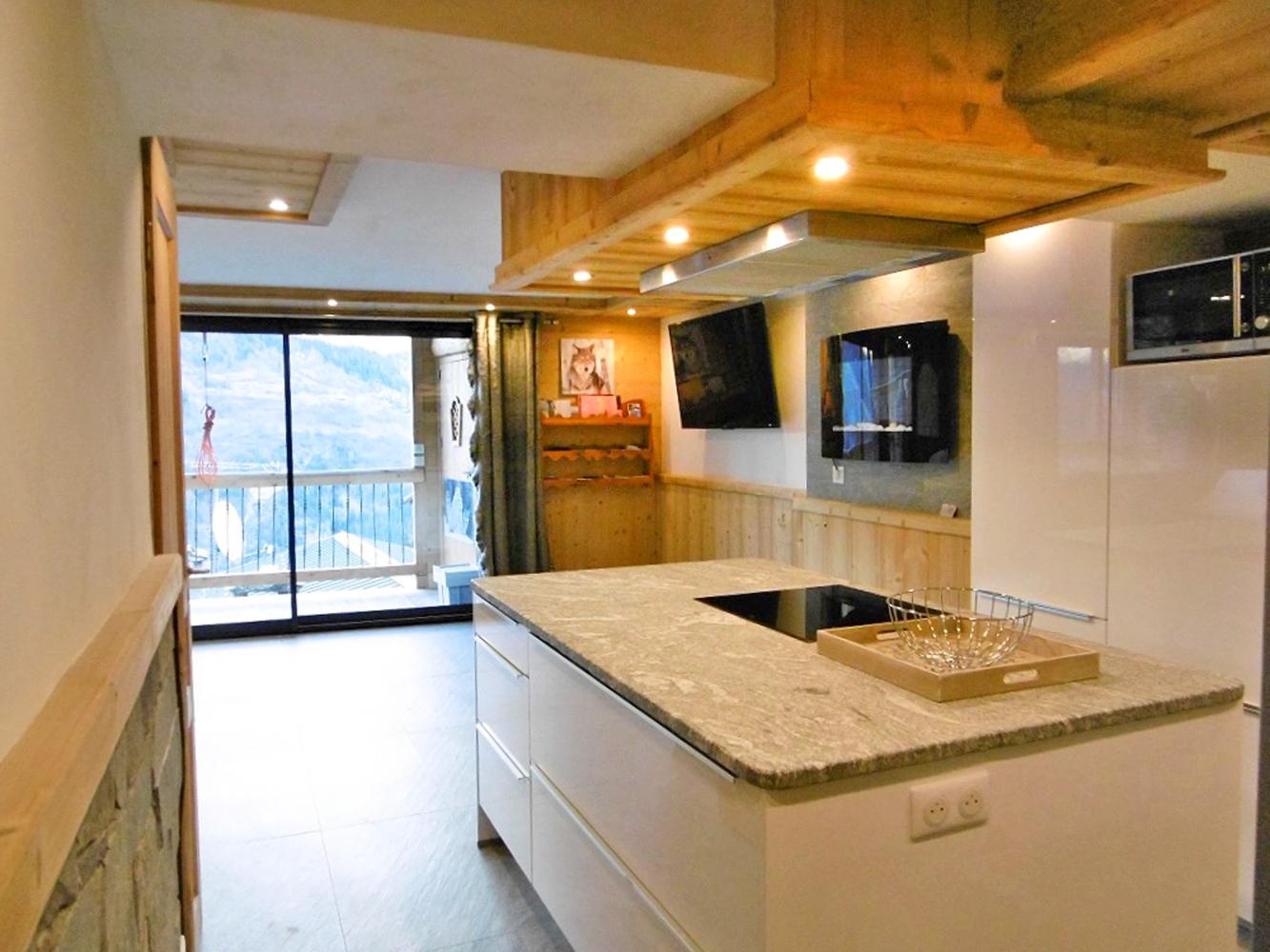 kitchen open to the living room (dishwasher + refrigerator with freezer compartment + gas cooker + oven + microwave + coffee machine + toaster + electric kettle + electric raclette grill + fondue set); outdoor jacuzzi (shared use); flat screen satellite TV; hi-fi system; free WiFi; washing machine; ski locker; ski room; ski boot dryer