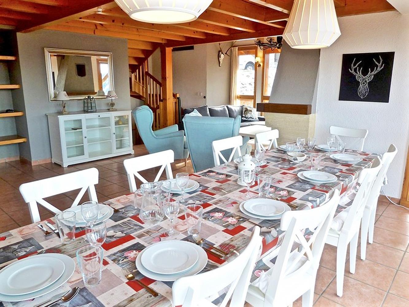 chalet altitude ~1.600 m; top of the ski slopes 3.250 m, with glacier; ParadiSki (La Plagne + Les Arcs) 425 km ski slopes, 175 ski lifts. Ski season approx. beginning of December until end of April. The modern cablecar „Vanoise Express“, the connection between Les Arcs and La Plagne, commences in Peisey-Vallandry. There is a famous deep snow slope "Bellocôte north edge" starting at 3.200 m. The cross country skiing centre with approx. 40 km of ski runs is in Nancroix; reachable either by foot or with the ski bus (free of charge). You can also have a ride with a dog- or horse-drawn sleigh or experience a romantic snowshoe hiking (with guide).