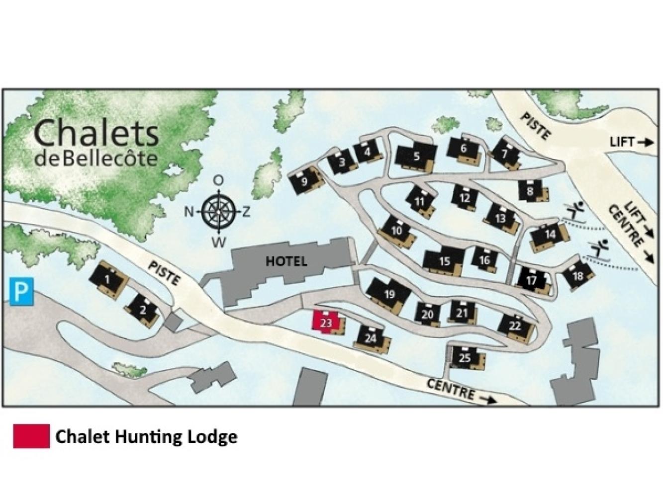 Luggage transfer on arrival and departure between car park and chalet included. Distance to the village centre of Vallandry where shops, restaurants and ski school are located either via ski or the road (approx. 400 m).
