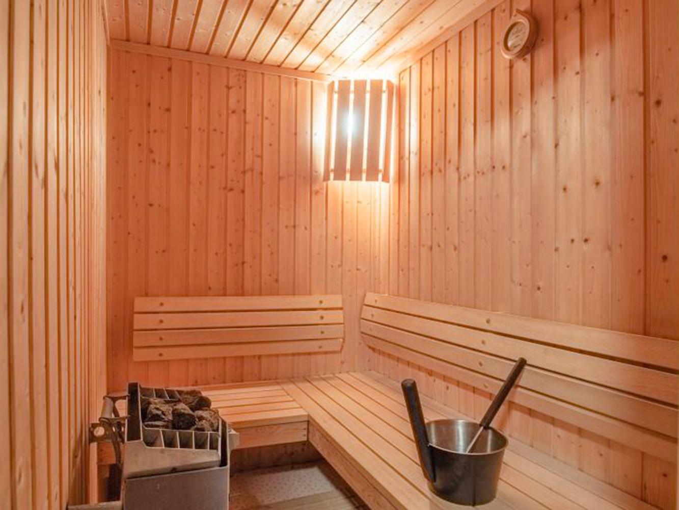 After an eventful day of skiing, relax in the living area with its open fireplace, sofas, armchairs and large flat-screen TV. Enjoy a drink in the lounge with bar and sitting area. Professional, fully equipped kitchen. The dining room with several tables seats 34 people comfortably. There is also a relaxation area with sauna (approx. 4 pers.) on the same floor. Separate WC (handicapped accessible).
