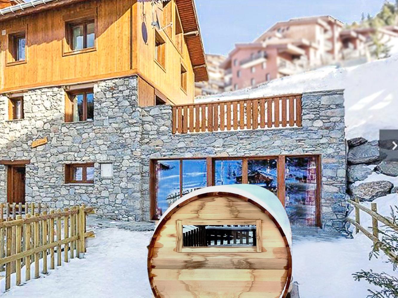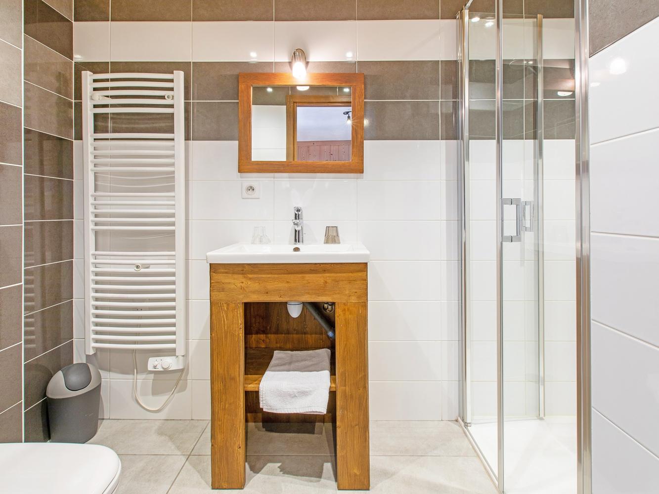 Ground floor : Entrance hall with ski room. A bedroom with two single beds; TV; en suite bathroom with shower; separate toilet. Very spacious and inviting living / dining room. Modern open-plan kitchen, perfectly and fully equipped. On this floor is the private outdoor sauna (included in the rental price) on the terrace. After skiing, relax and enjoy a fantastic view of the Savoyard mountain landscape.