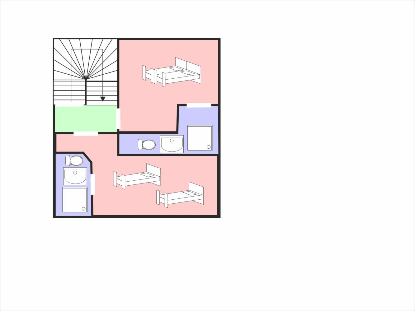 2. OG : A bedroom with two single beds; en suite bathroom with shower and toilet. A double bedroom, en suite bathroom with shower and toilet.