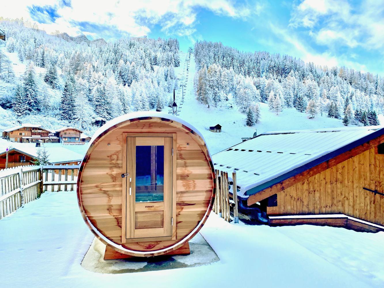 Distance to ski area La Plagne - Paradiski ~50 m. Luxury Ski in – Ski out chalet with 6 bedrooms and 6 bathrooms in the ski area La Plagne (approx. 50 m). Chalet Epicea features four floors and disposes of free WiFi and an outdoor sauna for 4-6 persons on the terrace. The 4-seater chairlift "Plagne 1800" starts about 50 m from the chalet and is completely connected to the entire area of La Plagne - Paradiski. The spacious chalet has been completely renovated recently so that you can enjoy the high quality and living standard. It combines the traditional atmosphere of a mountain chalet with contemporary comfort.