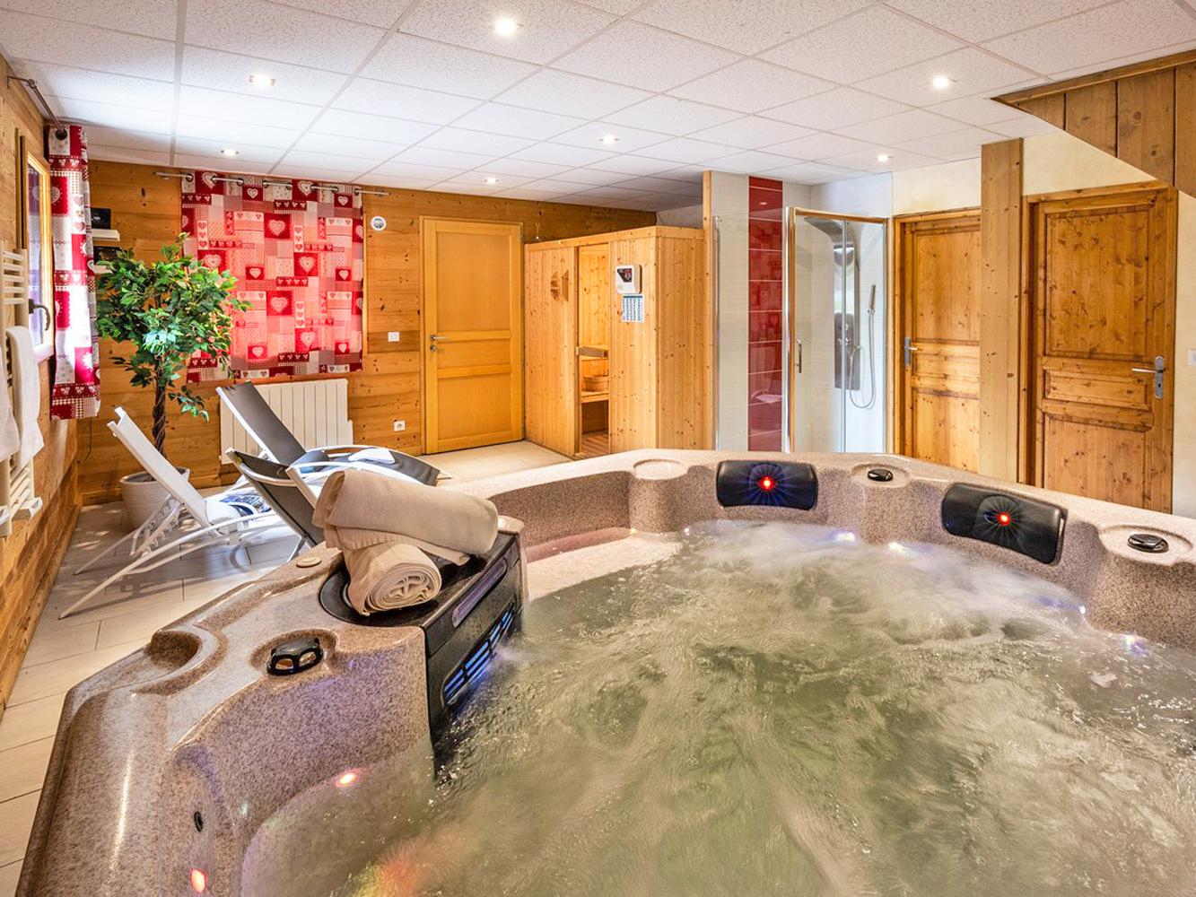 Distance to ski area 3 Vallées ~150m. Superb luxury chalet located next to the ski slope (approx. 150 m), with jacuzzi, sauna, stove (pellets) and free WiFi.