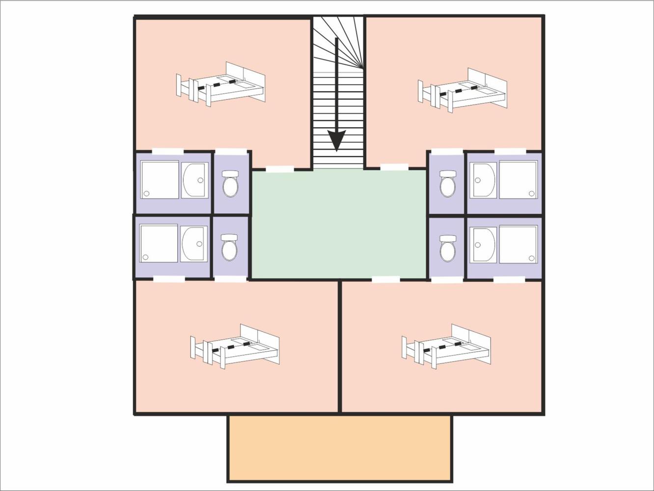 The chalet provides a spacious living room with dining area and a cosy chimney corner. The five double rooms (two single beds each) as well as the family-room for 4 people all have an ‚ en-suite‘ bathroom (with shower) and a separate toilet. From the balcony on the south side you have a spectacular view over the Belleville mountains and valley.