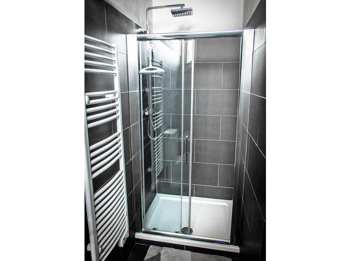 On the ground floor you will find the cosy living room with sofa lounge and fireplace, you can relax in front of the smart TV. Further entertainment is provided by the Sonos smart speaker and a selection of DVDs and board games. Also located on this floor are a double bedroom with en-suite bathroom and a twin bedroom and another bathroom.
