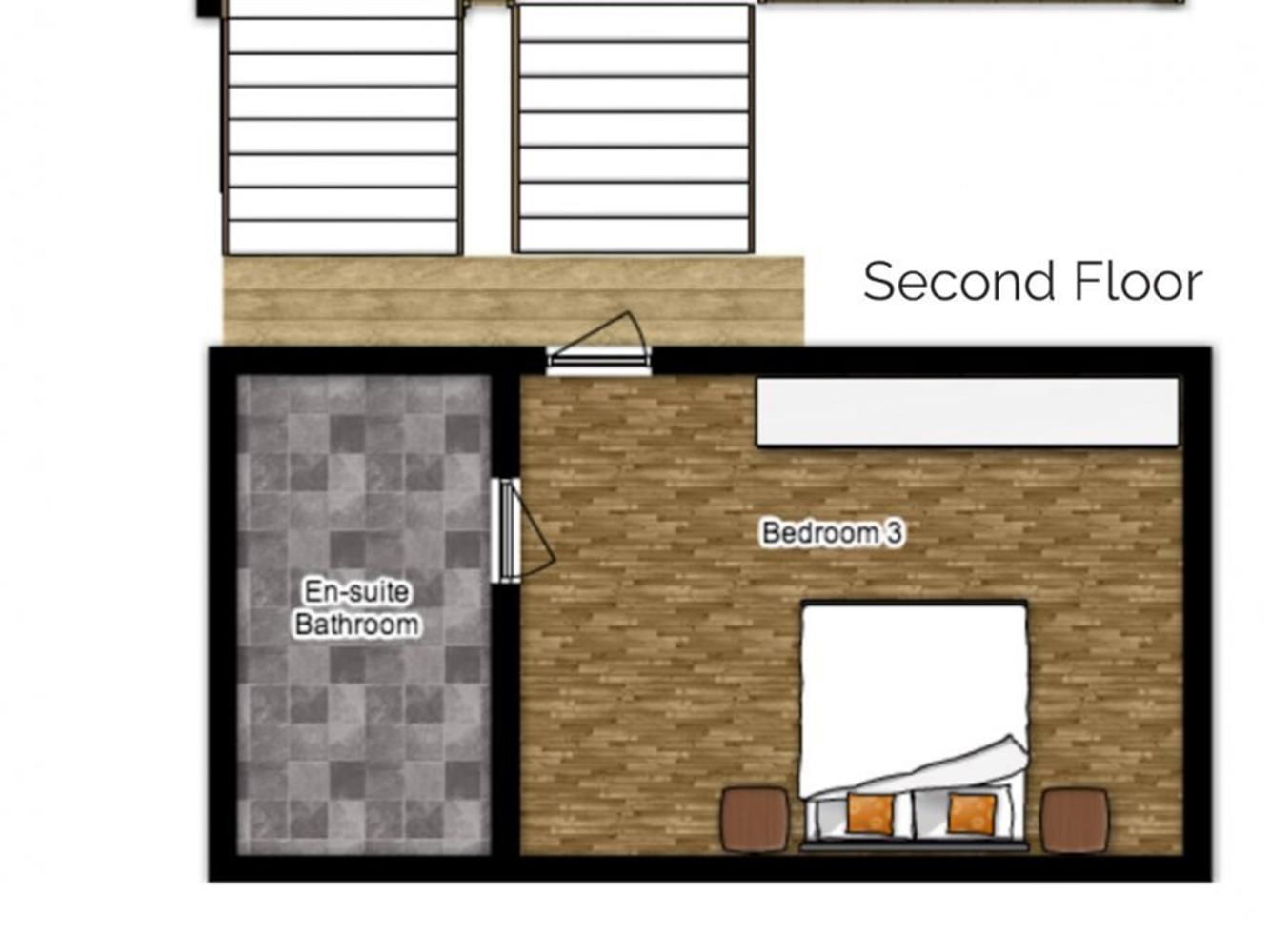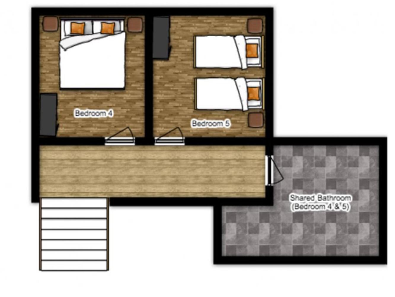 On the 2nd floor there is a bedroom with double bed and mezzanine bed and en-suite bathroom.