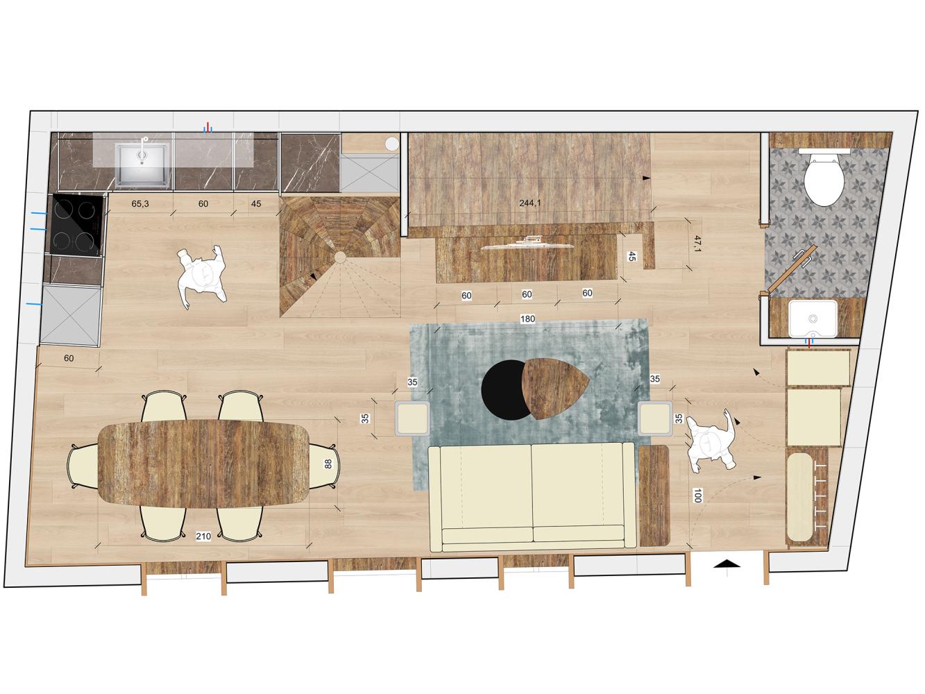 kitchenette (dishwasher + refrigerator with freezer compartment + cooker with 4 ceramic hobs + oven + microwave + toaster + electric kettle); sauna; satellite TV; free WiFi; terrace; balcony; ski locker; electric ski boot dryer