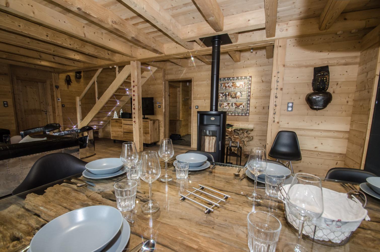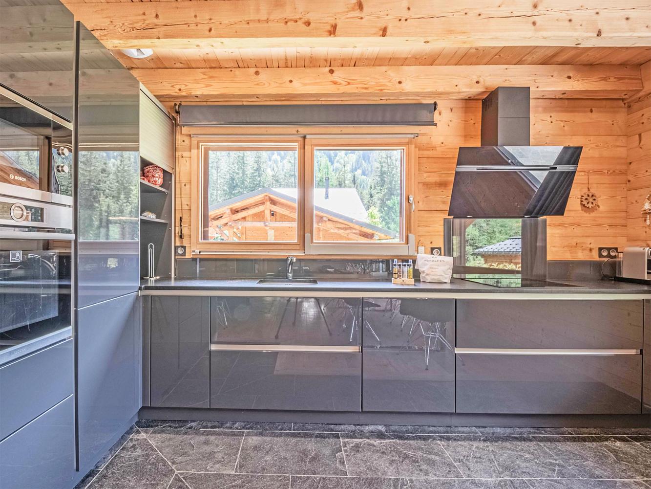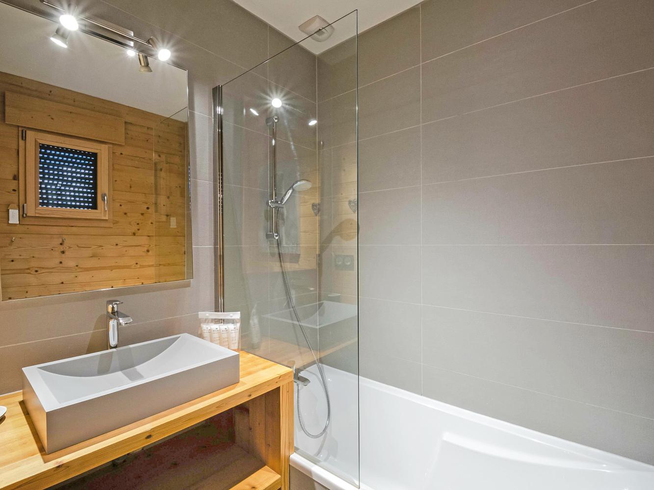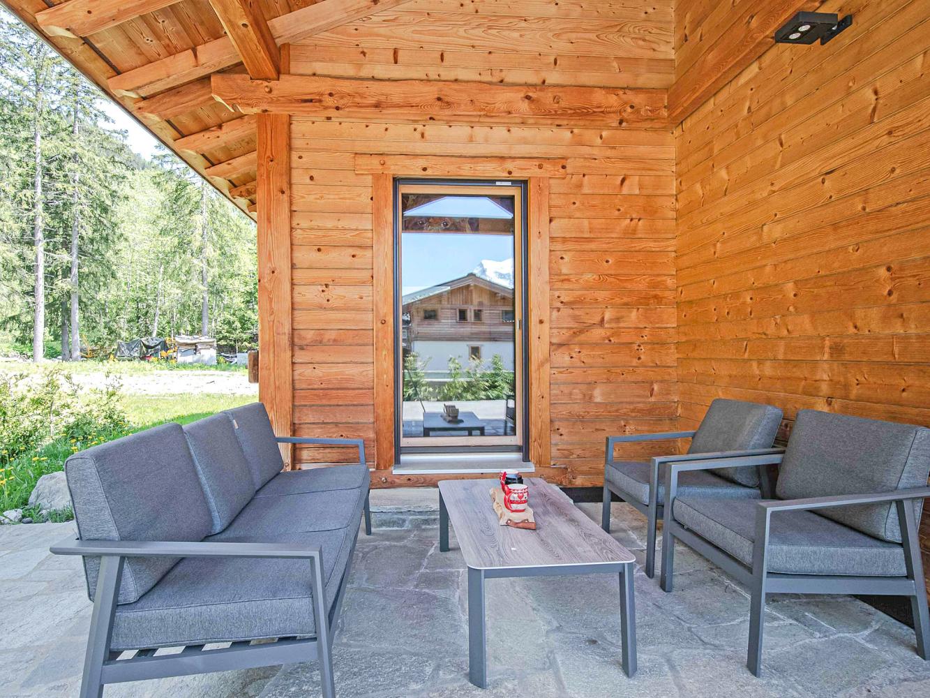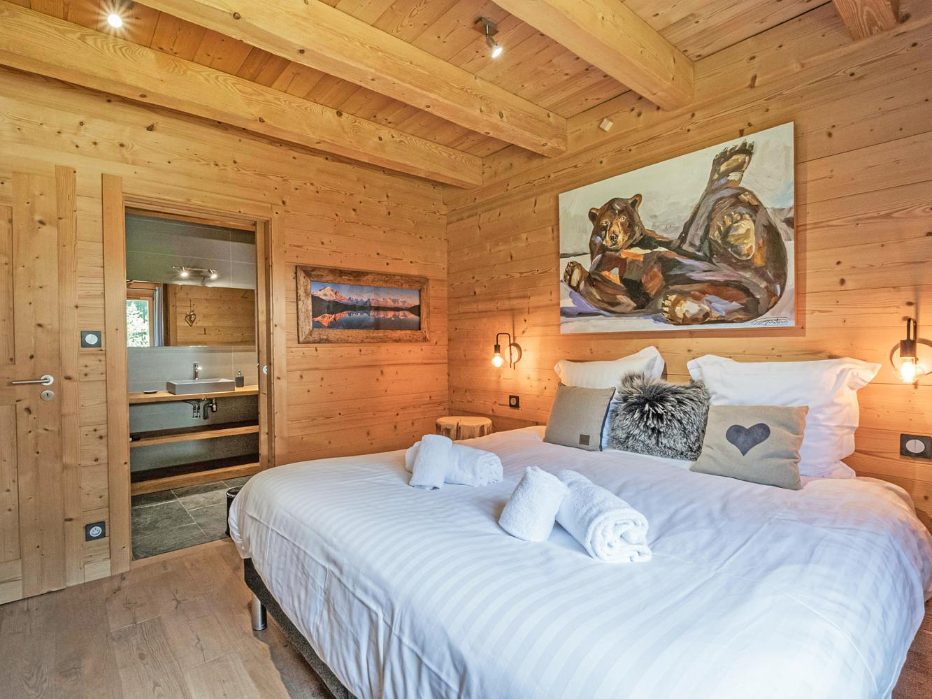Modern and luxurious chalet with sauna, wood-burning stove and free WiFi in the hamlet of Grassonnets, between Chamonix and Argentière. The chalet with alpine architecture extends over 2 floors and is elegant and stylishly furnished. Spacious living/dining room with open-plan and fully equipped kitchen. There are 5 bedrooms: 4 double bedrooms (180 x 200 cm each) and one triple bedroom (2 single beds, 90 x 190 cm, and a bunk bed 90 x 190 - only suitable for a child up to 12 years). 4 bedrooms have an en-suite bathroom.