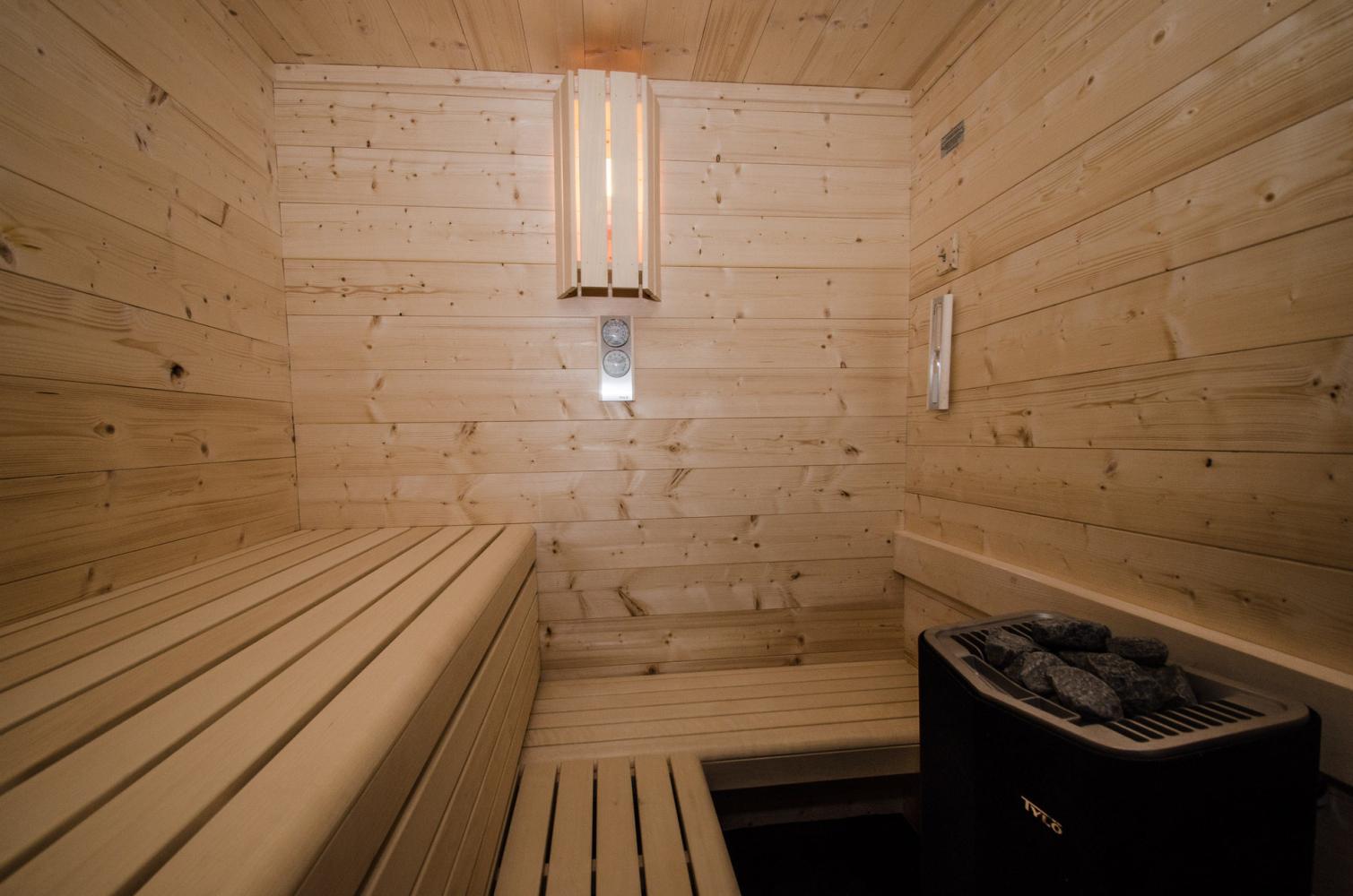- wellness area (sauna + fitness training utensils + washbasin + shower)