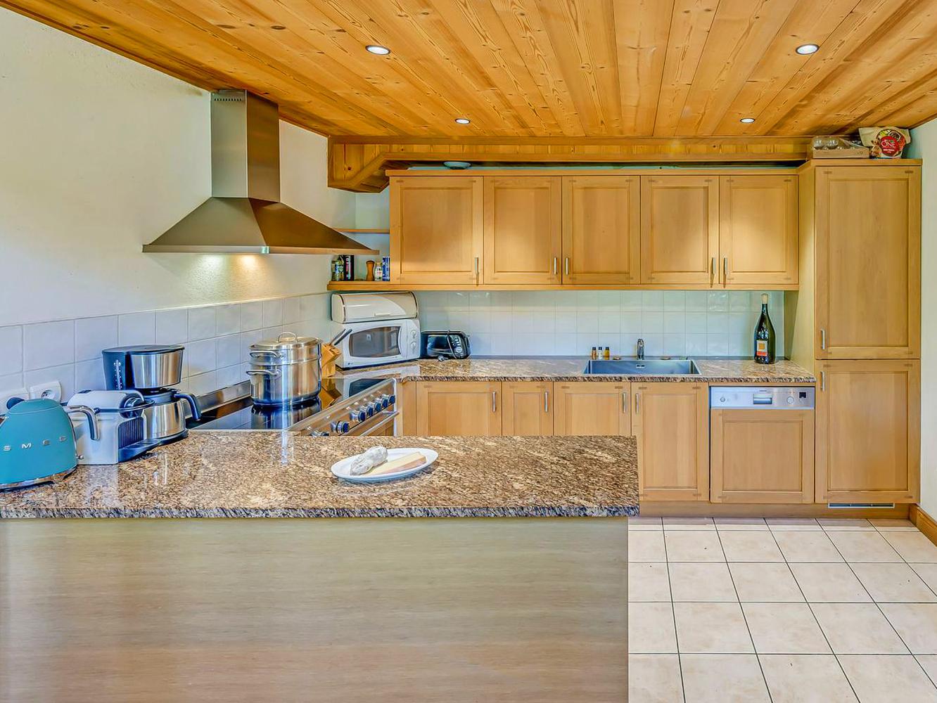 kitchen open to the living room (dishwasher + refrigerator with icebox + cooker with 4 ceramic hobs + oven + microwave + coffee machine + coffee capsule machine Nespresso + toaster + electric kettle); fireplace; flat screen satellite TV; satellite TV in all bedrooms; free WiFi; hairdryer; towel dryer; balcony-terrace; ski locker; ski boot dryer