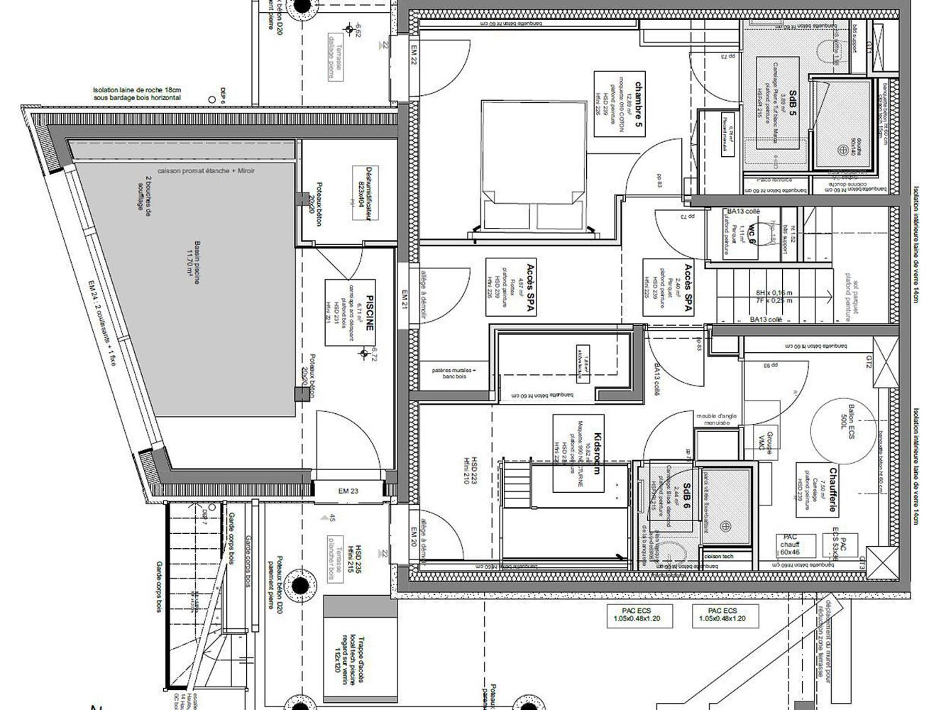 Level -2: Bedroom with double bed, bathroom with shower and WC. In addition, there is a "kids' room" with double bed (140 x 190 cm) and bunk bed (90 x 190 cm), bathroom with shower; play alcove. A separate WC is located on the floor.