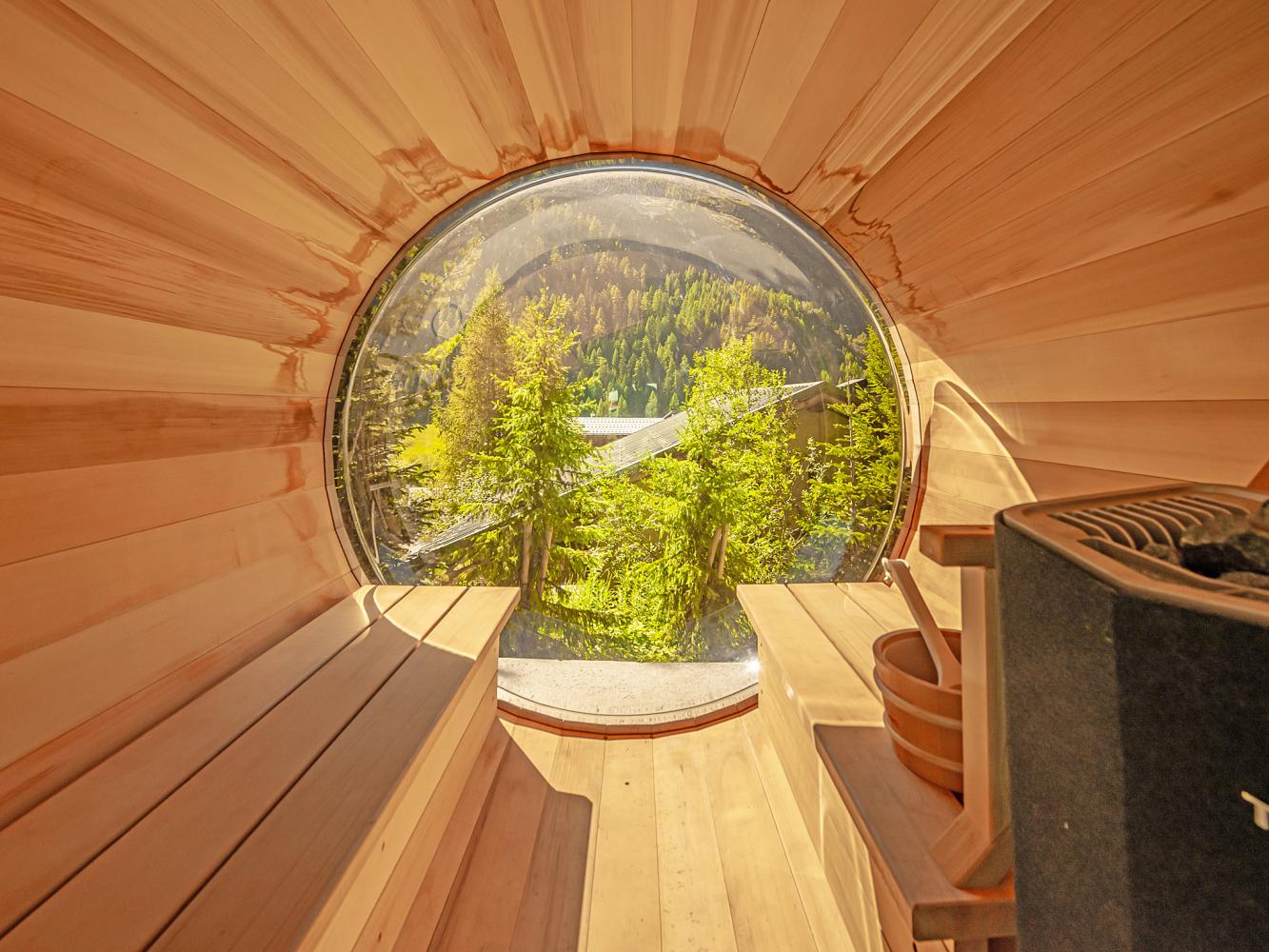 You can relax in the private indoor pool (18 m²) with counter-current system after an exciting day. Access to the terrace with sauna cabin.