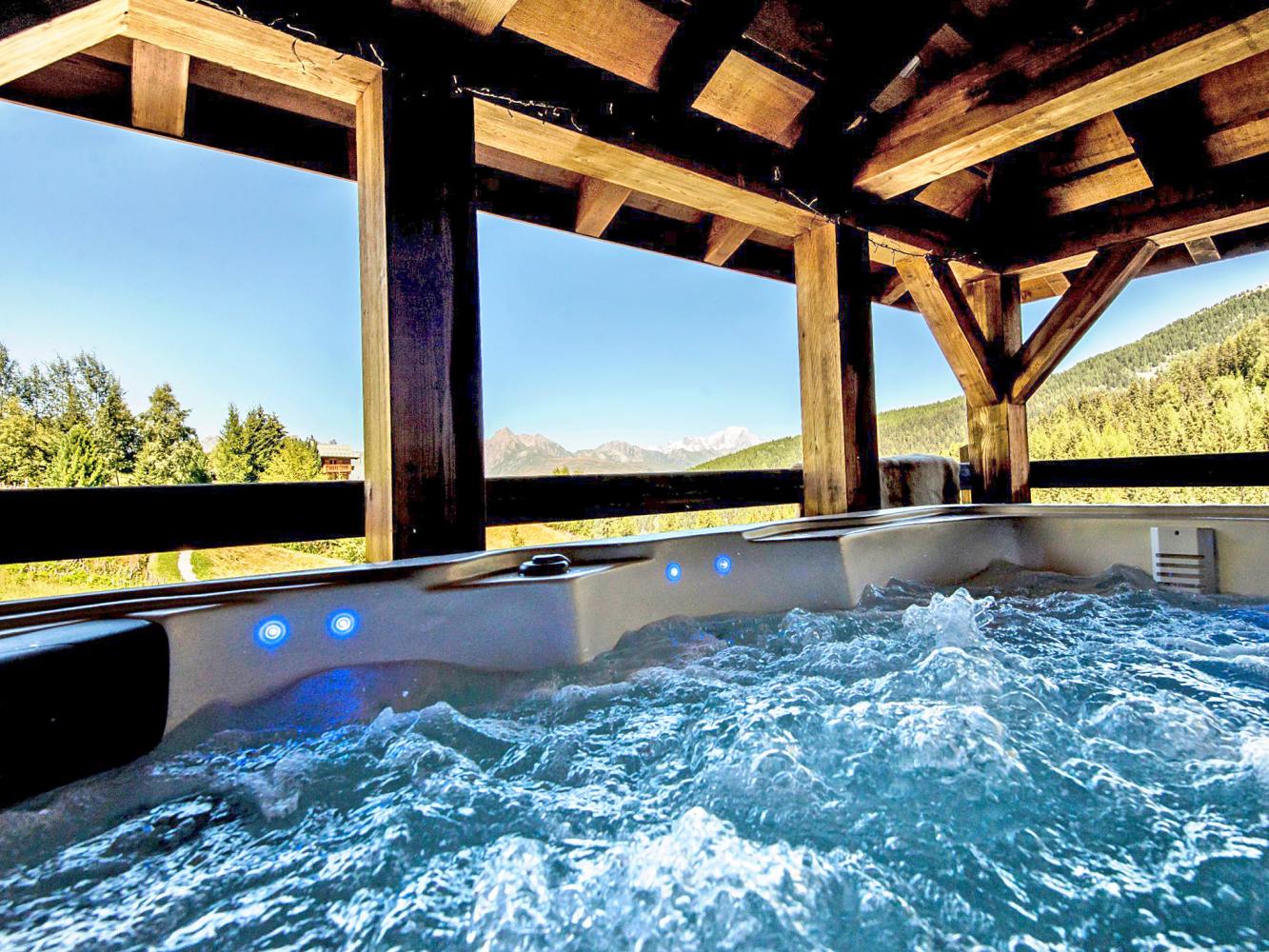 Distance to ski area La Plagne - Paradiski ~80 m. This charming, comfortable chalet, with sauna and outdoor jacuzzi (shared with Chalet Plagne 1800 PM2 and accessible every other day, on request) offers an exceptional view of Mont Blanc. It is located just 80 m from the chairlift 1800 and is part of "Les Chalets de Cocoon", a group of 4 chalets. Chalet Plagne 1800 PM1 is next to chalet Plagne 1800 PM2 (on the right in the first photo).