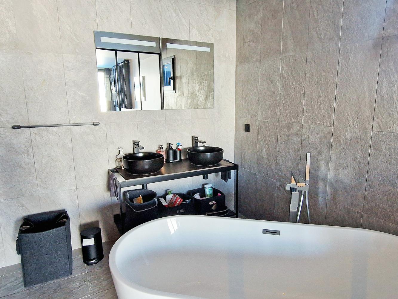 The second floor is the heart of the chalet: Enjoy cosy chalet evenings in the living area with sofas and TV, and decorative fireplace (not usable). The open-plan kitchen with island and bar stools is modern and very well equipped. The dining table seats 10 people. This floor also features a spa area with sauna, shower and WC. The jacuzzi on the terrace is the perfect place to relax after a day of skiing.
