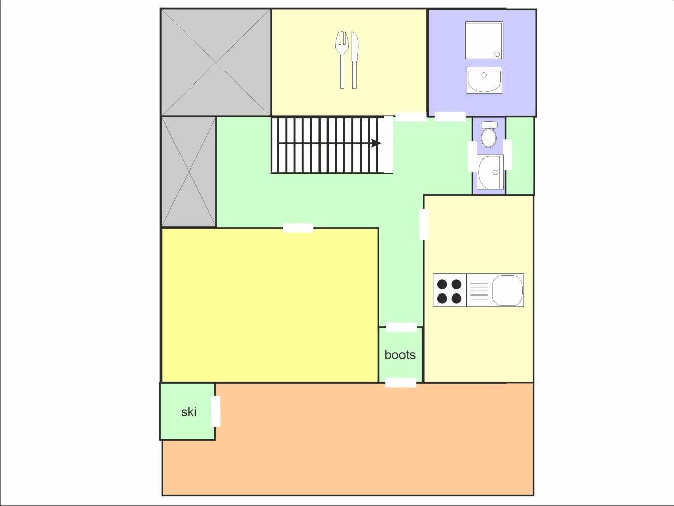 The 1st floor disposes of five bedrooms with double beds (160 cm x 200 cm), as well as a bathroom and a separate WC. There is also a second entrance with electric ski boot dryer.