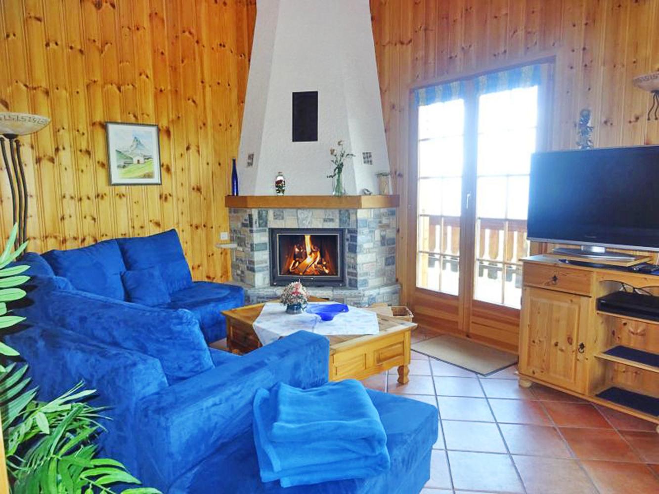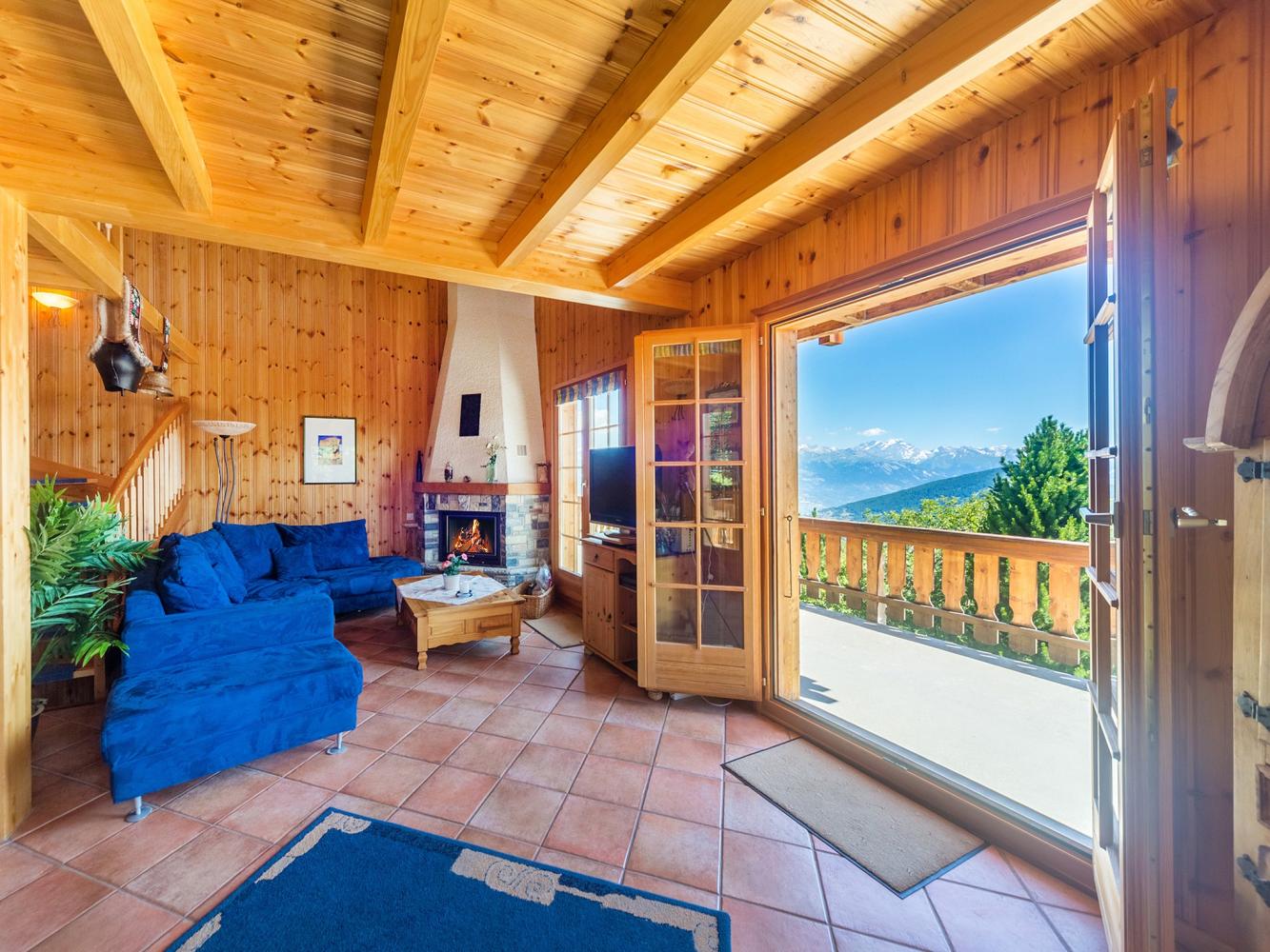 Distance to ski area 4 Vallées ~950 m. Comfortable, spacious chalet with fireplace and free WiFi. Traditional wooden furniture creates the unique charm of this chalet. Amazing view on the Bernese Alps and the Rhone Valley. Two bedrooms with double bed (2 mattresses) and one bathroom are located on the ground floor. Another bedroom with access to the terrace has a double and a bunk bed. A laundry room and a storeroom are available. The dining and living area on the first level, with a well-equipped open kitchen, invites spending cosy evenings together. The living room with fireplace is perfect to relax after a long skiing day. A separate WC is situated in the entrance area. Second floor: bedroom with double bed (2 mattresses), private bathroom and computer corner. A garage for 1 car and 2 private car parking spaces are available at the property.