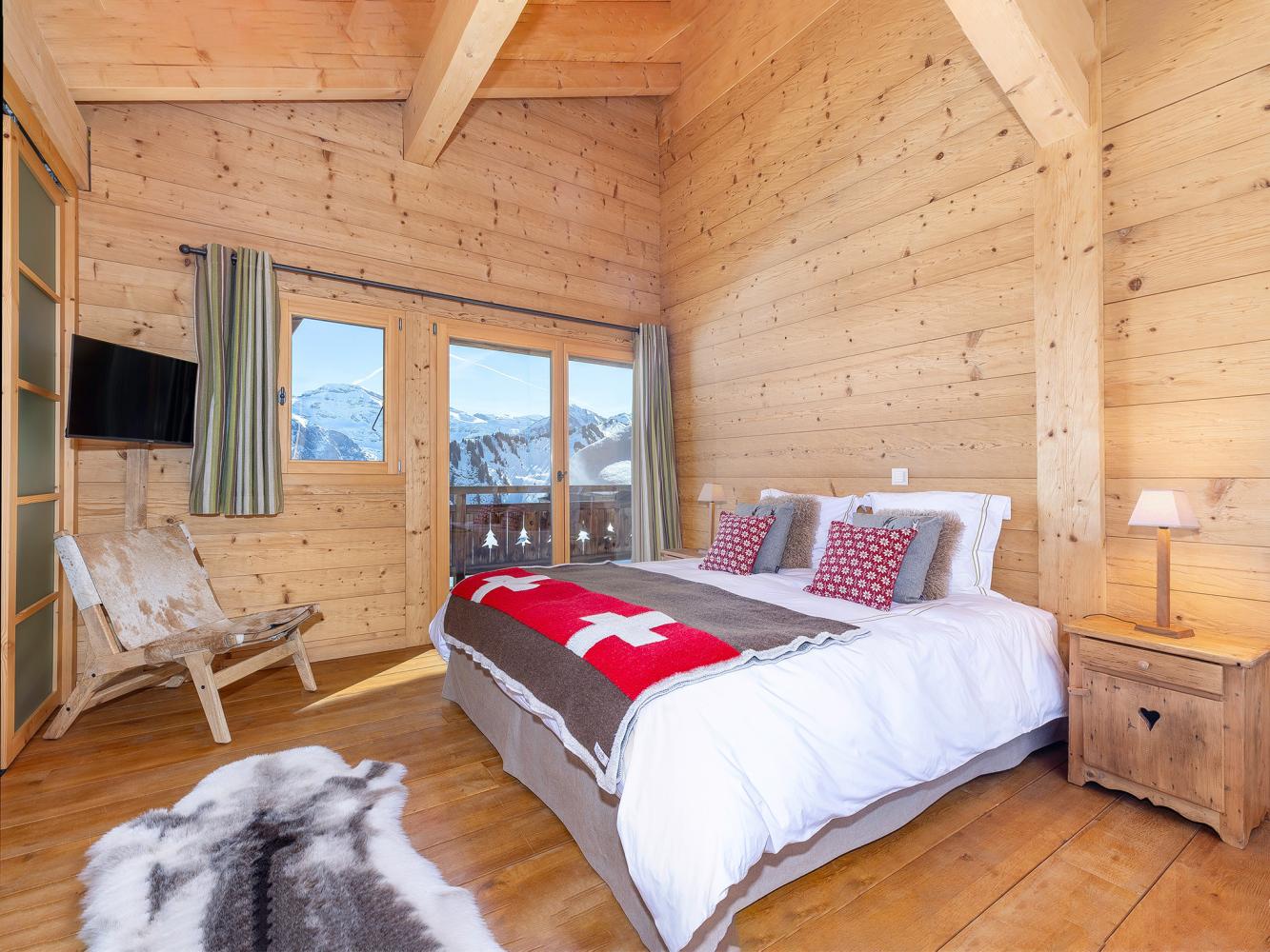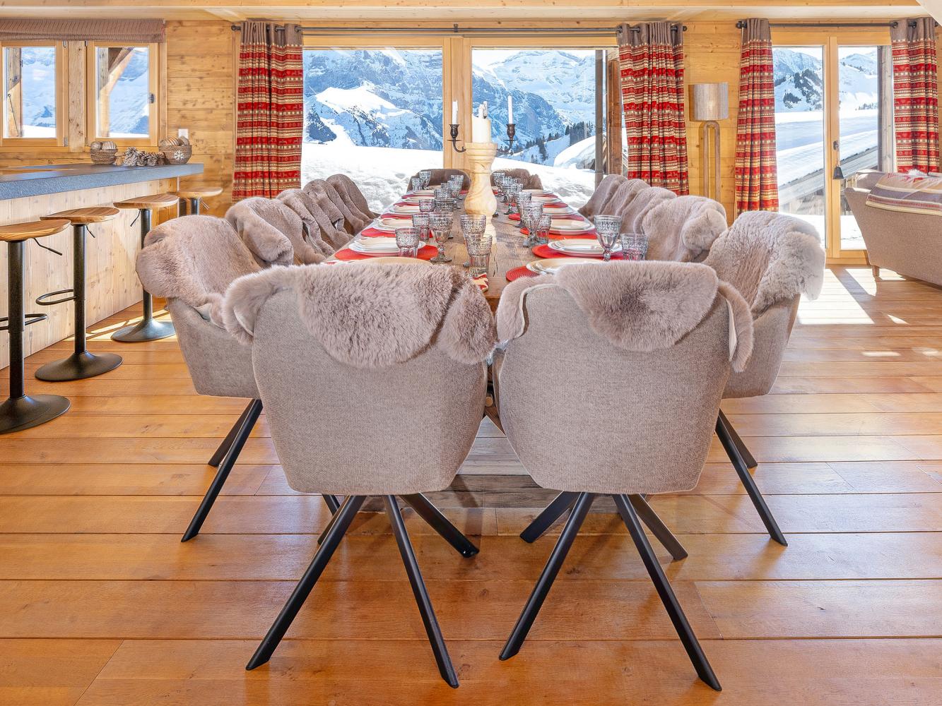 Distance to ski area Portes du Soleil ~350 m. Luxury chalet located in Les Crosets, in the heart of the Portes du Soleil ski area, in a ski-in/ski-out location: you can reach the slopes by putting on your skis about 50 metres from the chalet away and then crossing over to the marked ‘Col des Portes du Soleil’ ski slope. You can also ski back to the chalet (see ski info). The spacious chalet extends over three levels and comfortably accommodates up to 16 people with 6 bedrooms and 5 bathrooms. Free WiFi. The bright and elegant interior combines modernity and tradition with fine materials such as wood, creating a warm, authentic atmosphere.