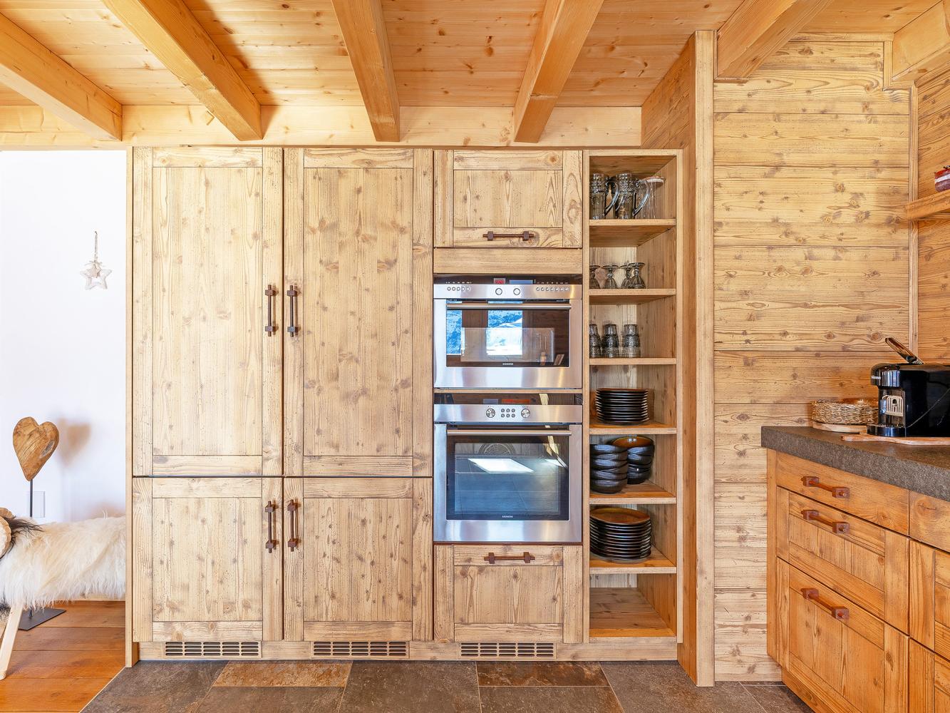 kitchen open to the living room (dishwasher + refrigerator + refrigerator with freezer compartment + electric cooker + induction cooker + oven + microwave + coffee machine + toaster + fondue set + Wine climate cabinet); flat screen TV; free WiFi; washing machine; tumble dryer; underfloor heating; terrace; balcony; ski room; electric ski boot dryer