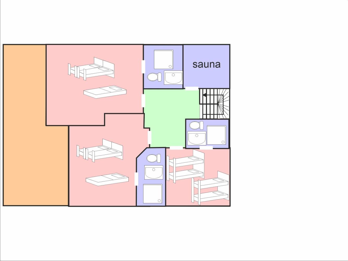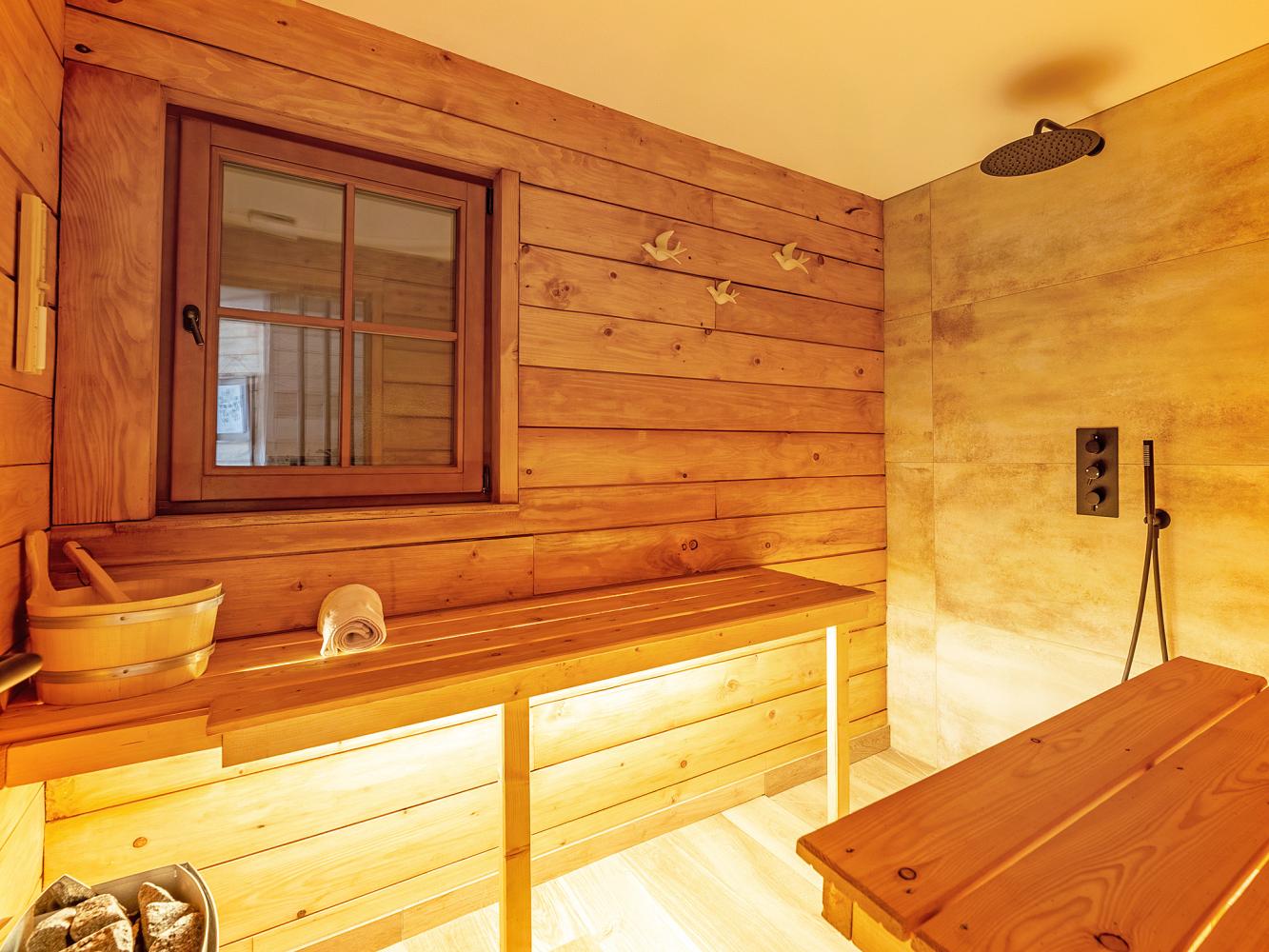 On the ground floor there are two south-facing bedrooms, each with a queen-size double bed (160 x 200 cm) and pull-out bed (90 x 200 cm); access to the sun terrace. Furthermore, there is a room for 4 persons with 2 bunk beds (90 x 200 cm; east side). Each of the rooms has its own bathroom with Italian shower and toilet. Relax in the sauna after an eventful day of skiing.