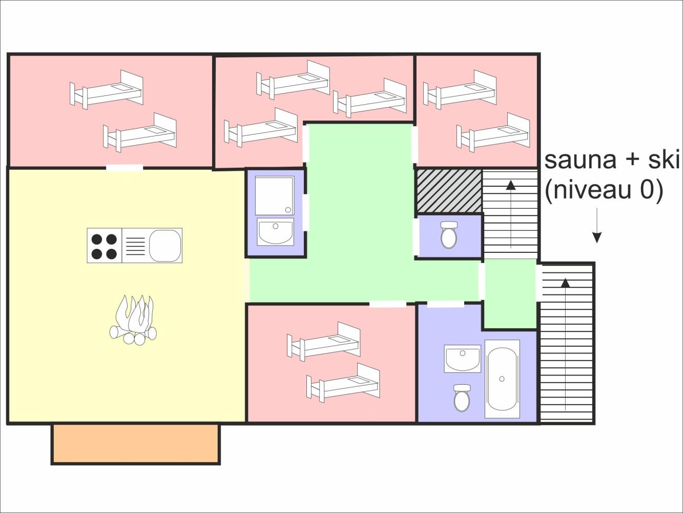 Dans six des sept chambres, les lits sont flexibles et peuvent être assemblés ou séparés. Le chalet est composé de deux appartements ; l'appartement du rez-de-chaussée pouvant accueillir jusqu'à 9 personnes et l'appartement du 1er et 2ème étage pouvant accueillir jusqu'à 15 personnes.