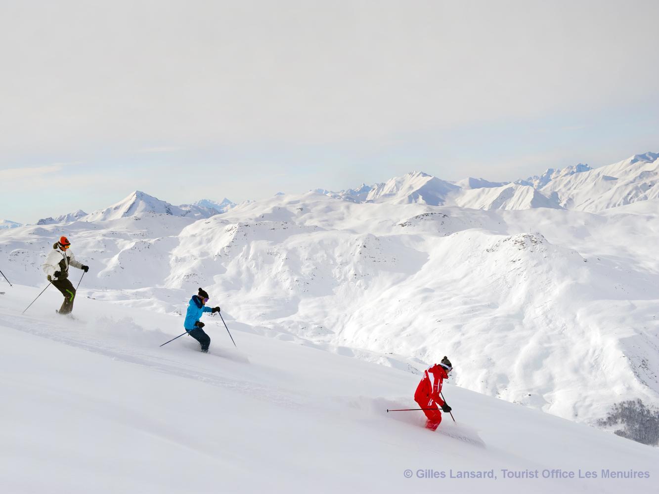 Altitude chalet 1.750 m ; sommet des pistes à 3.230 m ; 600 km de pistes de ski alpin, 172 remontées mécaniques. La piste qui mène au télésiège 4 places du Bettaix passe près du chalet (à env. 250 m). Cette piste bleue est enneigée avec des canons à neige ; elle assure avec le télésiège 4 places du Bettaix les liaisons vers Les Ménuires, Val Thorens, Méribel et Courchevel. L'arrivée de cet appareil performant se trouve au-dessus des Menuires-Centre ; d’ici l’ESF des Ménuires est accessible par une piste facile. Au domaine skiable des Trois Vallées - le plus grand domaine skiable du monde - on skie d'environ fin novembre jusqu'à début mai, au secteur de Val Thorens, accessible en voiture en quelques minutes.